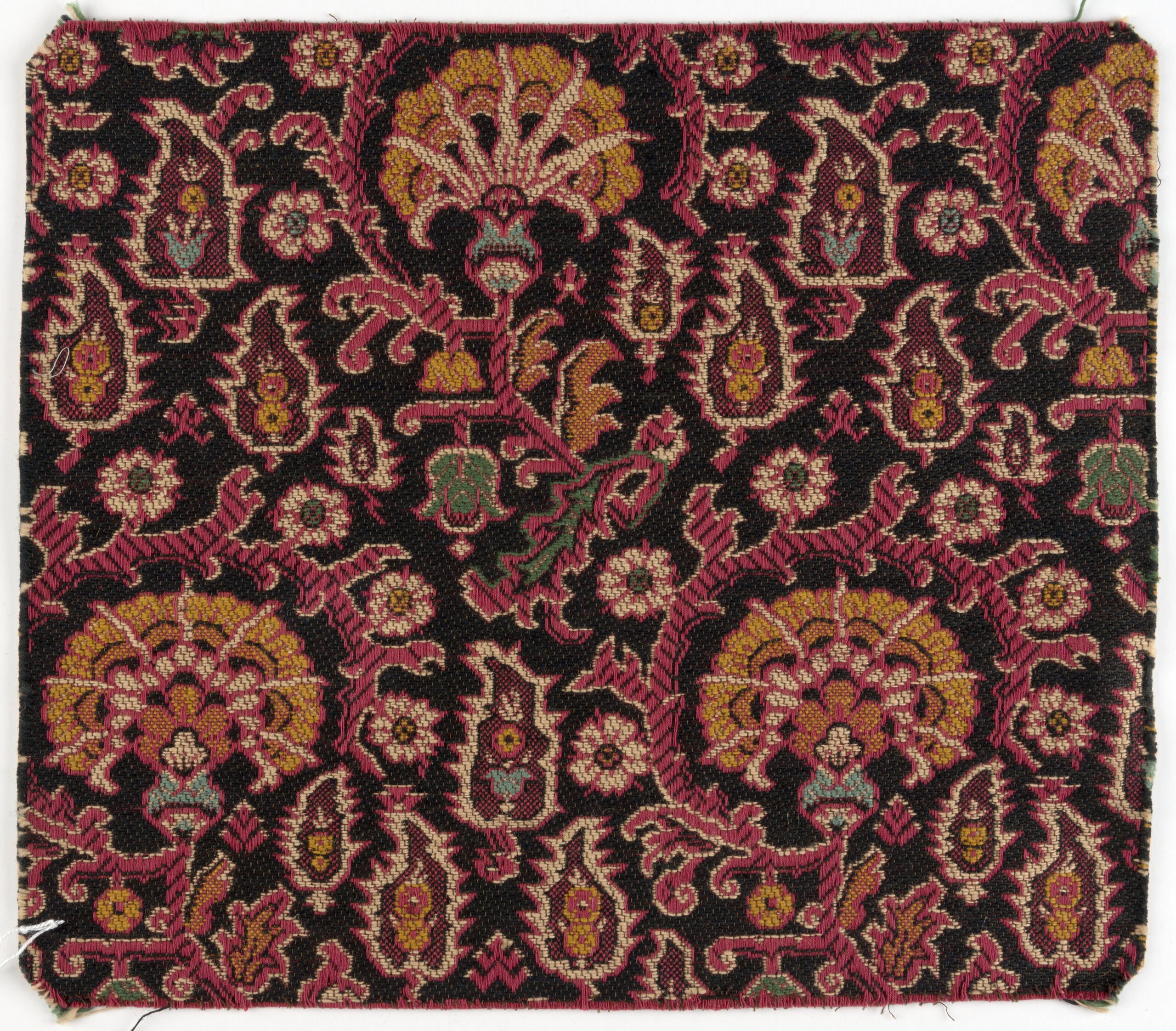 Stoffmuster, Möbelstoffmuster; orientalisches Muster auf schwarzem Grund, Philipp Haas & Söhne, MAK Inv.nr. TGMZ 2659