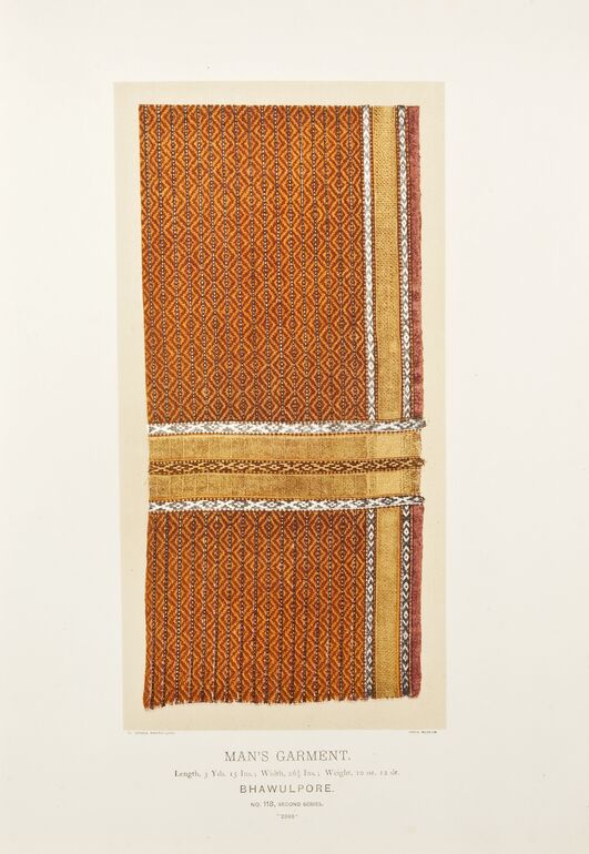 - Text am Objekt: MUSHROO. / Width, 21 ½ Price per Yard 3S. / AHMEDABAD. / NO. 501, SECOND SERIES. / "11688" / FOR EXAMINATION OF TEXTURE