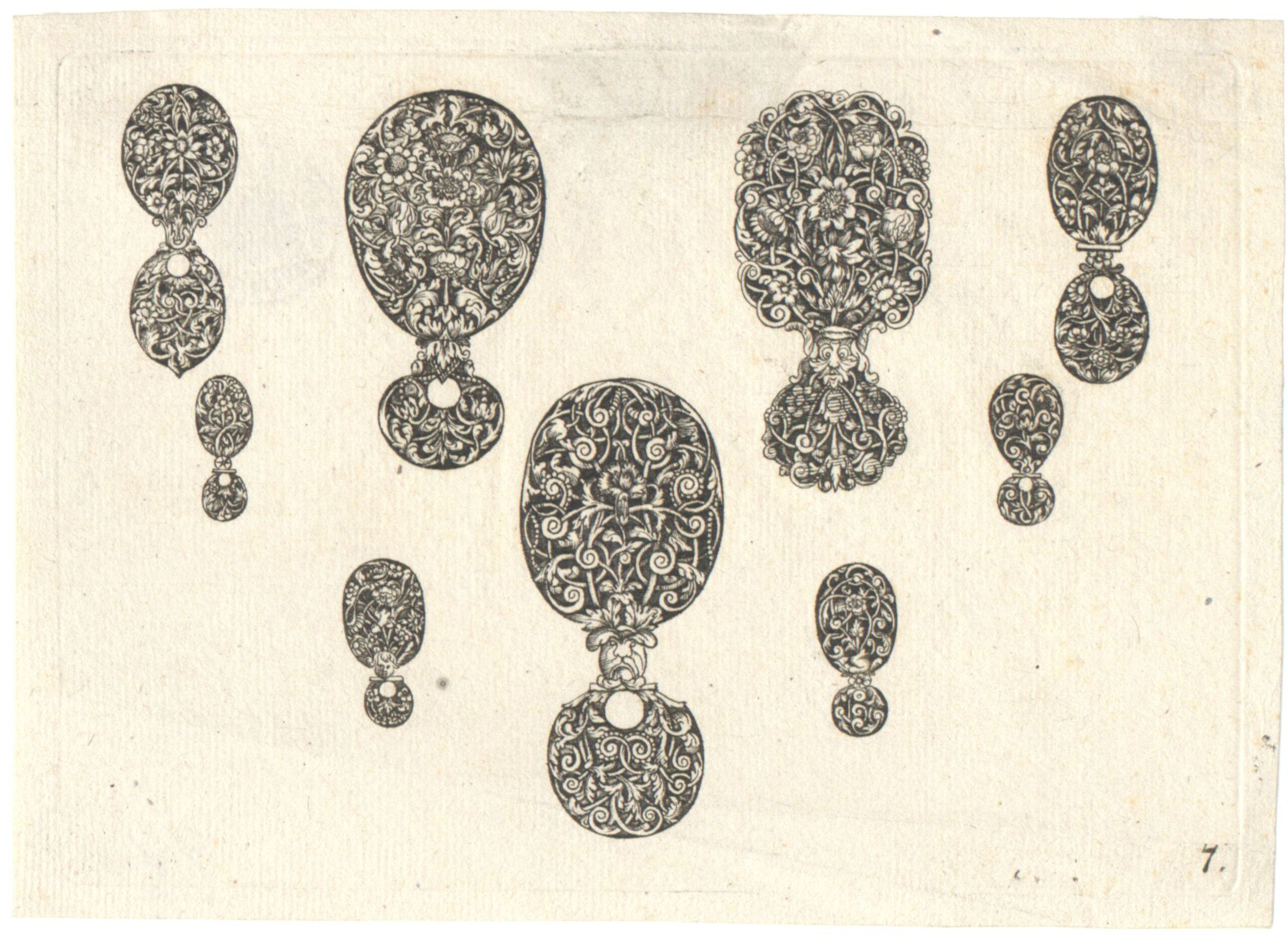 Ornamentstich, Neun Schließen, Blatt 7 aus einer Folge von seitenverkehrten Kopien nach Jacques Vauquer (vgl. K. I. 2751/9), Jacques Vauquer, MAK Inv.nr. KI 1-945-1