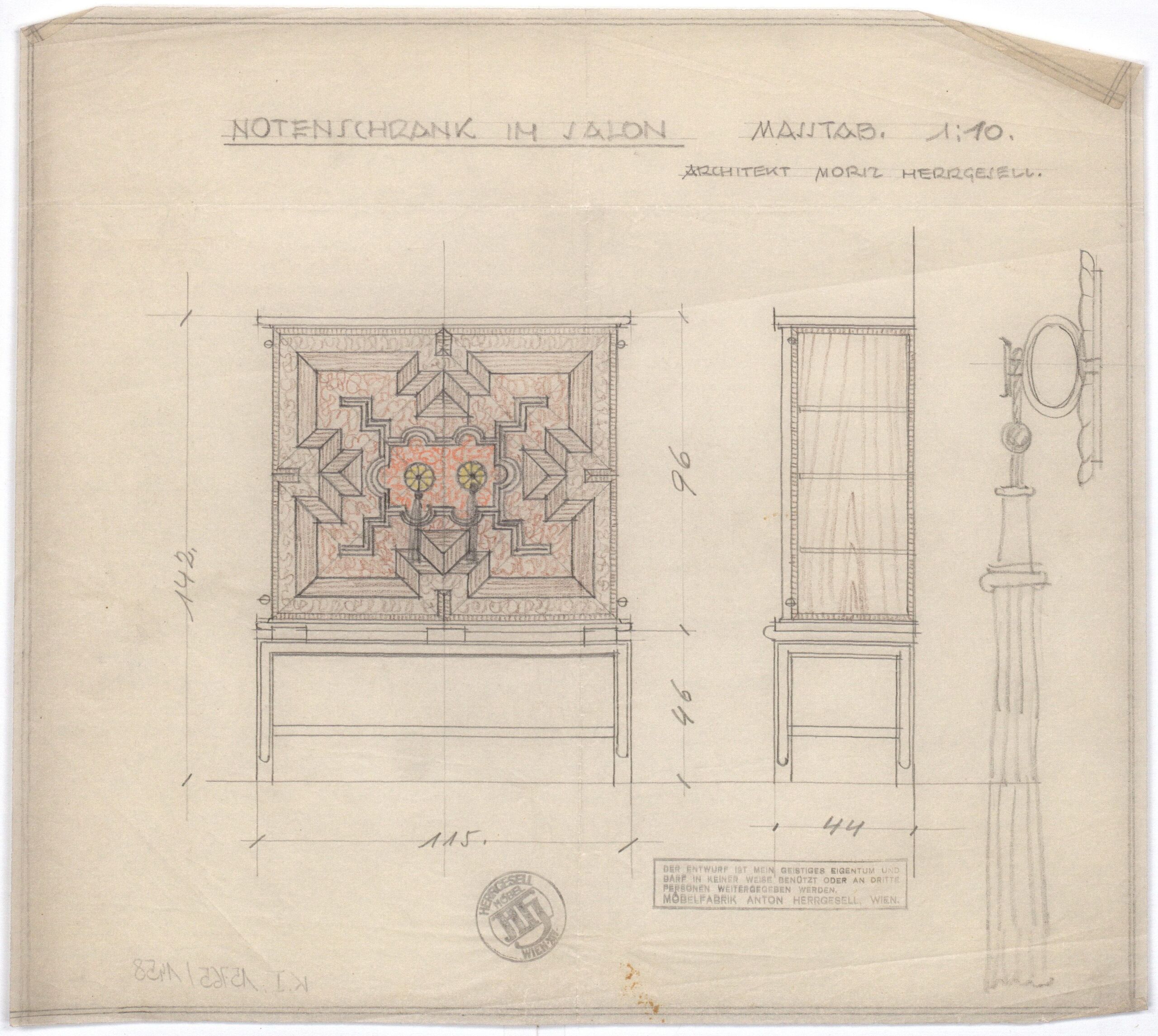 Entwurf, Notenschrank im Salon, Moritz Herrgesell, MAK Inv.nr. KI 15765-1458