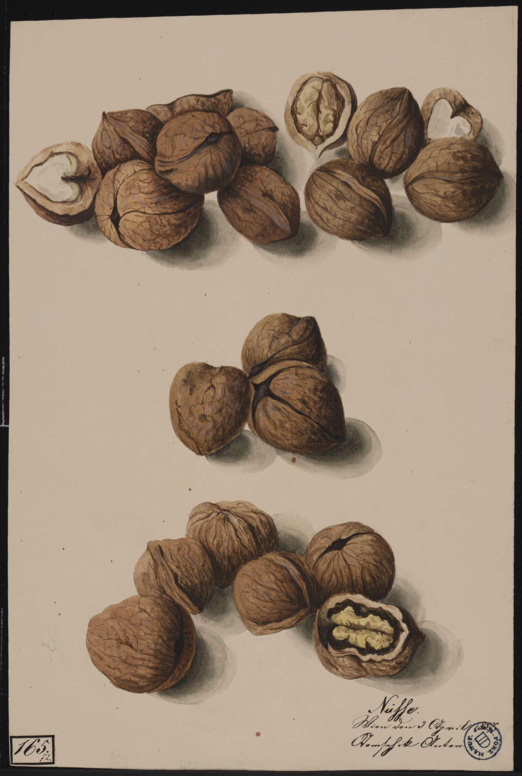 Pflanzendarstellung, Nüsse [Juglans / Walnuss / Pflanzenstudie], Anton Tomschik, MAK Inv.nr. KI 11295-31