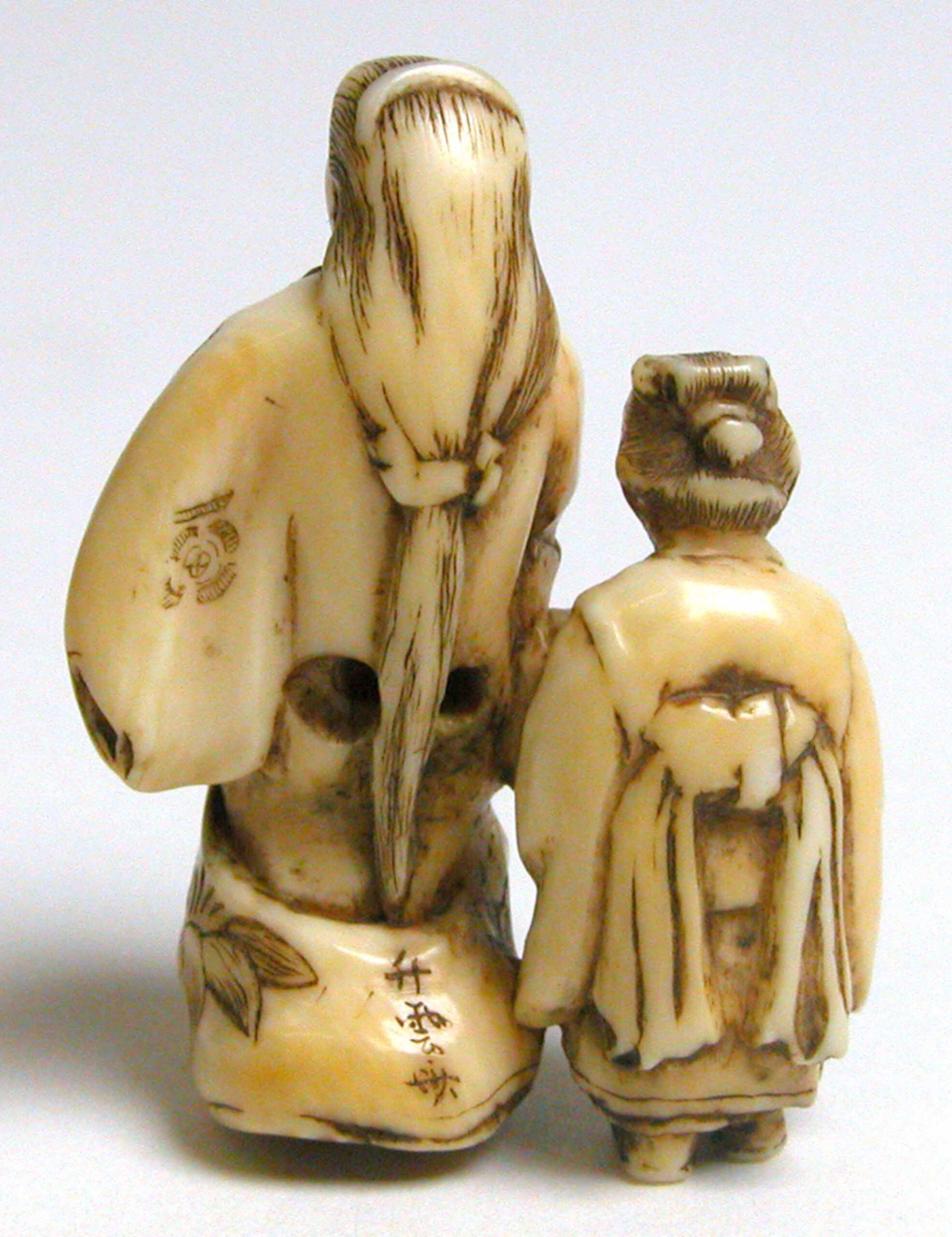 Netsuke 根付, Oiran (Kurtisane) mit kamuro, Anonym, MAK Inv.nr. PL 804