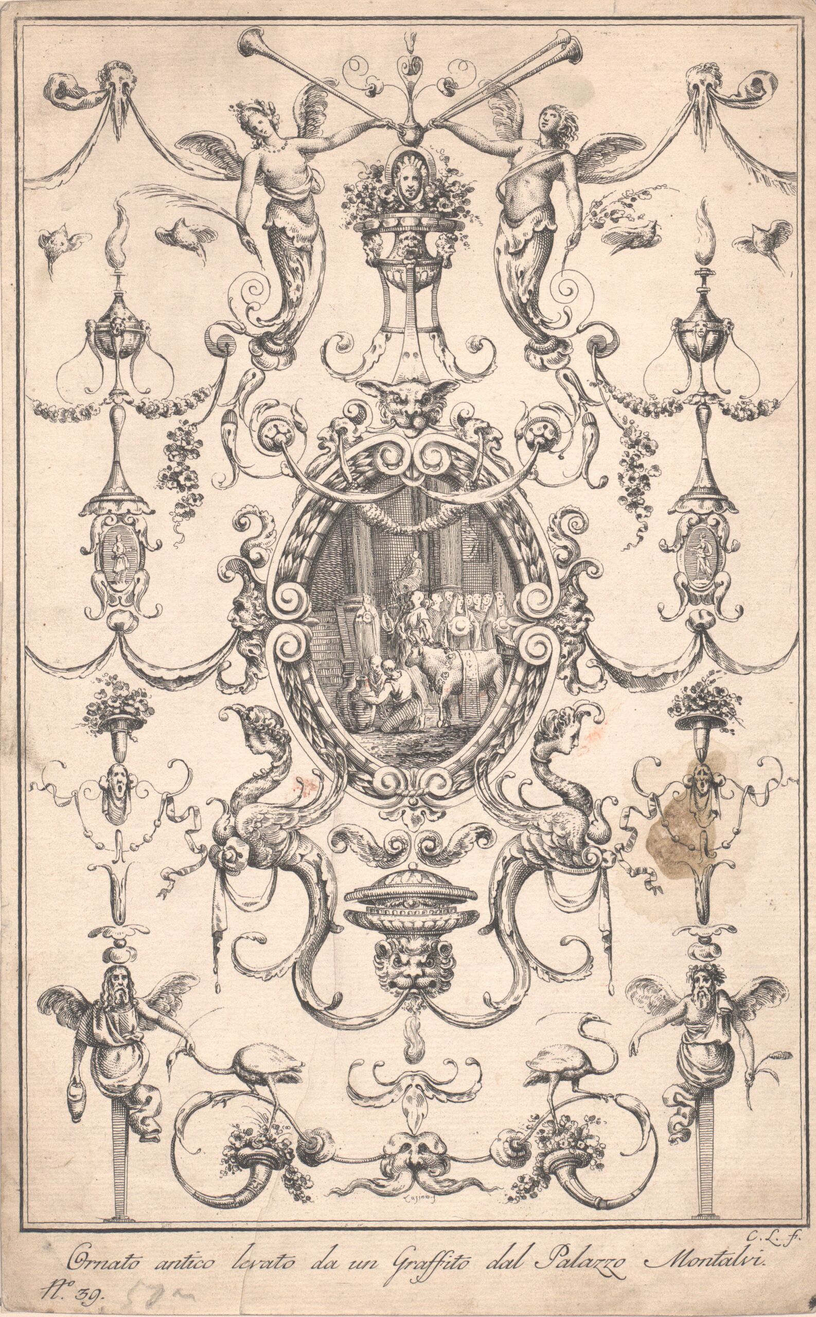 Ornamentstich, „Ornato antico levato da un Graffito dal Palazzo Montalvi.“, Blatt 39 aus der Folge „Ornati Presi da Graffiti, e Pitture antiche Esistenti in Firenze disegnati e incisi in 40. Rami da Carlo Lasinio Trevigiano etc.“, Carlo Lasinio, MAK Inv.nr. KI 3640-36