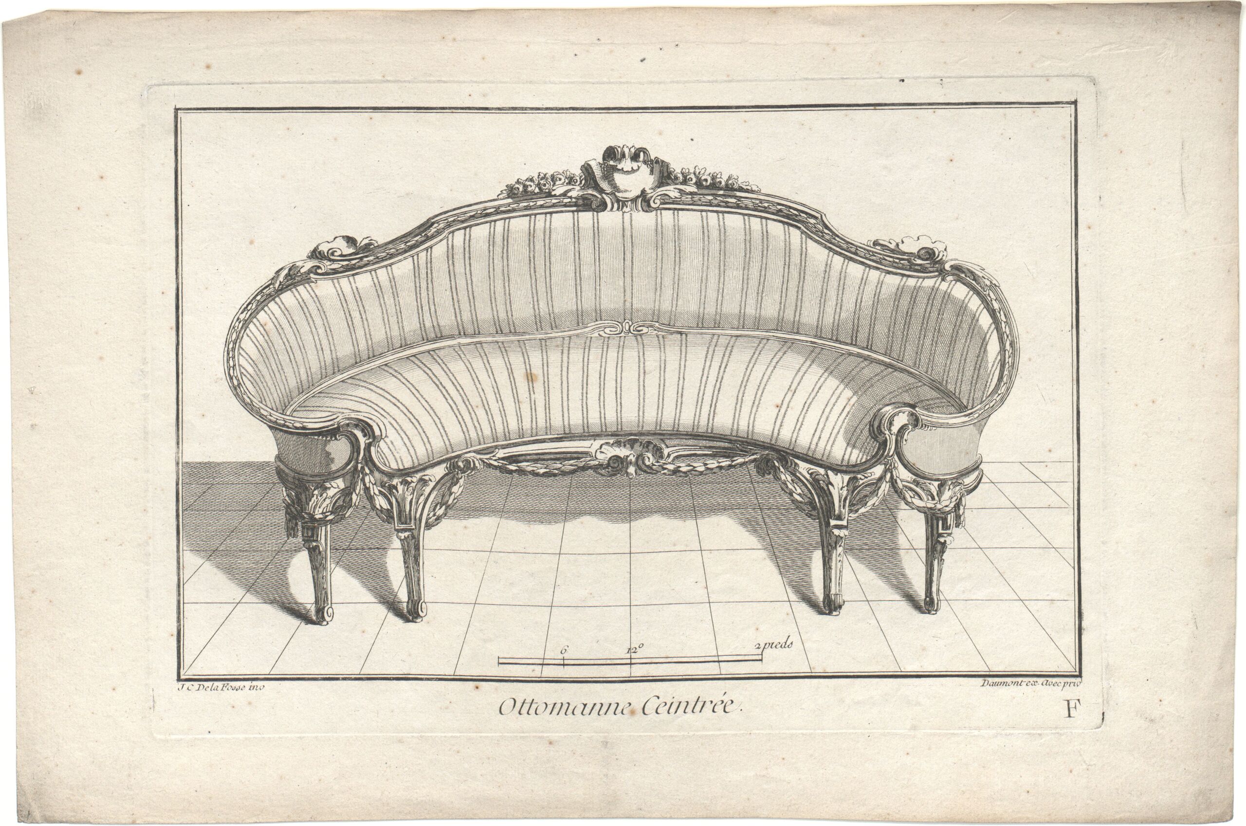 - „Ottomanne Ceintrée.“, Blatt aus der Folge F (Sofas) aus dem Reihenwerk, herausgegeben von Daumont (vom Bearbeiter vergebener Titel)
