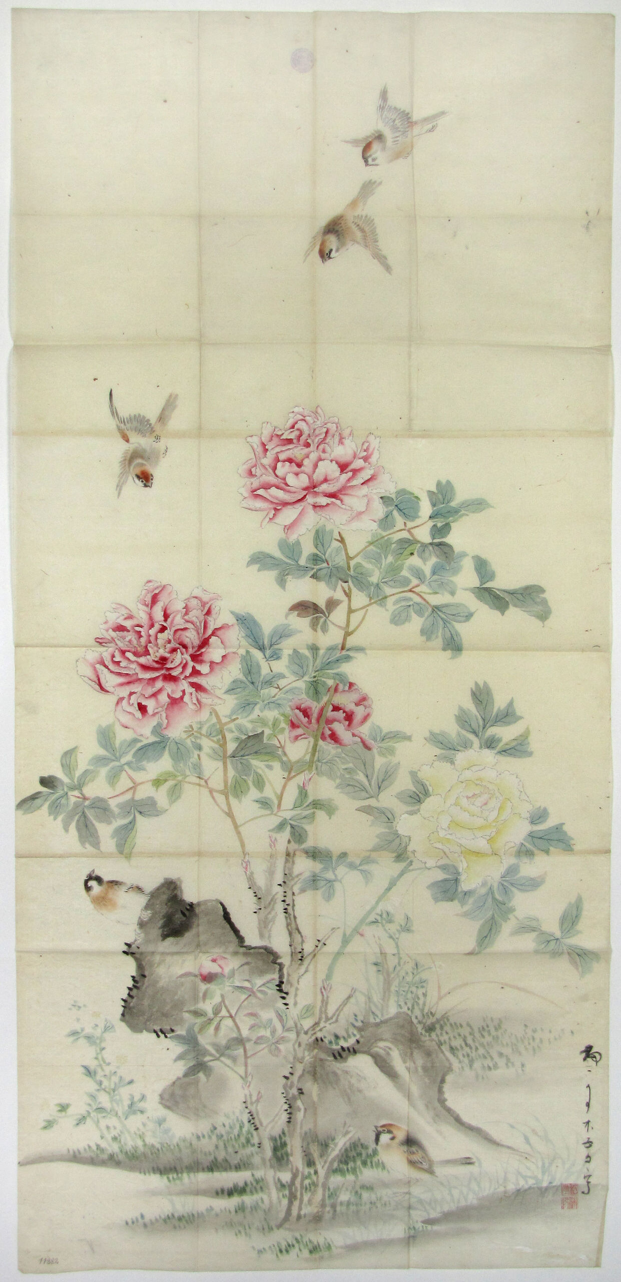 • Tuschezeichnung, Päonien und Vögel, Anonym, MAK Inv.nr. HM 11882