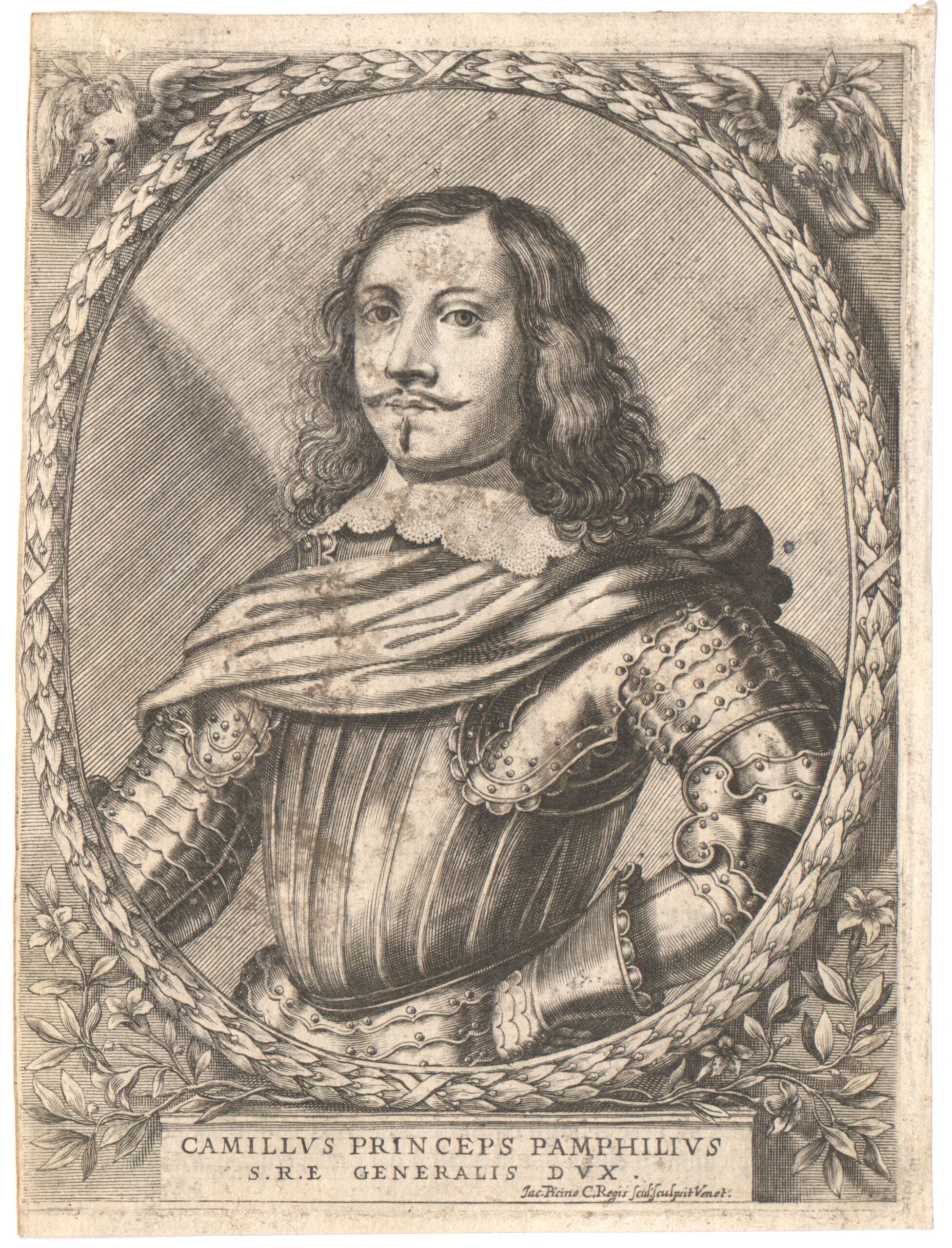 - Text am Objekt: CAMILLUS PRINCEPS PAMPHILIUS/ S.R.E. GENERALIS DUX. / Jac. Picino C. Regis scul. sculpsit Venet.