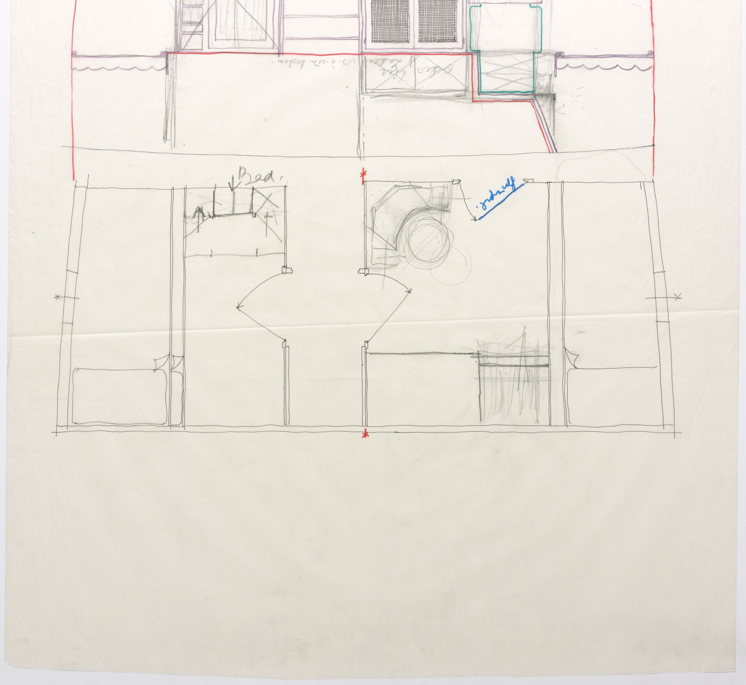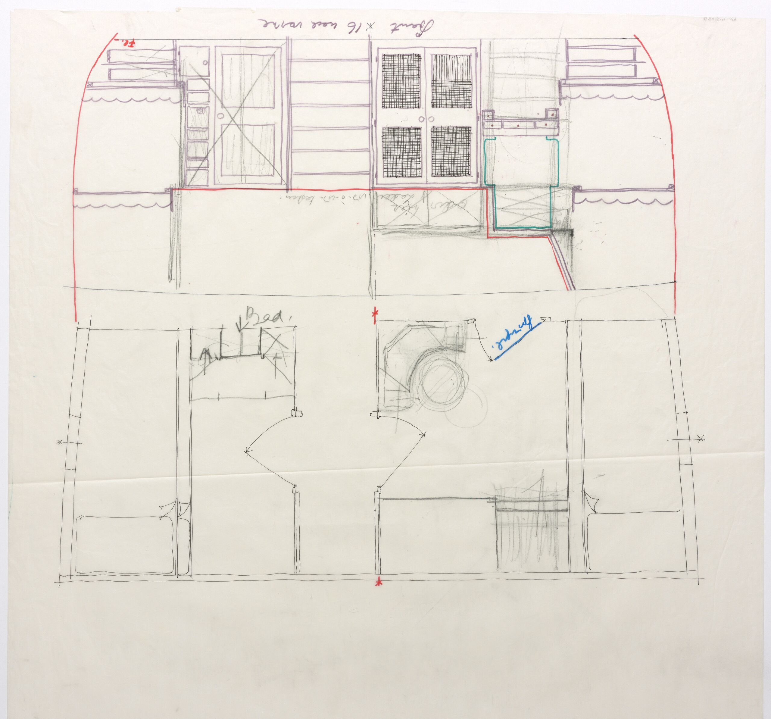 Skizze, Querschnitt und Grundriss von zwei Gästekabinen, Anna-Lülja Praun, MAK Inv.nr. KI 16475-4-189
