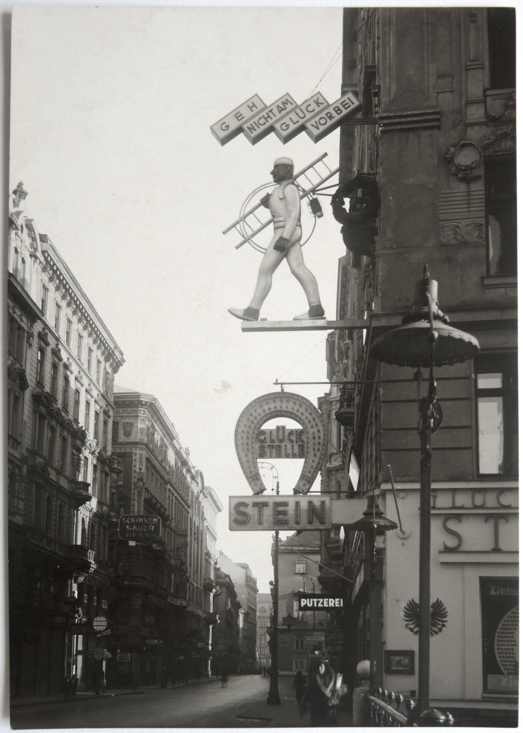 - Rauchfangkehrer, Geschäftsfassade "Glückstelle Stein" für Klassenlotterie (1913-1938), Wipplingerstraße 21, 1010 Wien; Anbringung eines Kranzes und Aufmarsch von Rauchfangkehrern anlässlich der Einweihung der neuen Reklamefigur eines Rauchfangkehrers zum 20jährigen Geschäftsjubiläum am 16. November 1933. (vom Bearbeiter vergebener Titel)