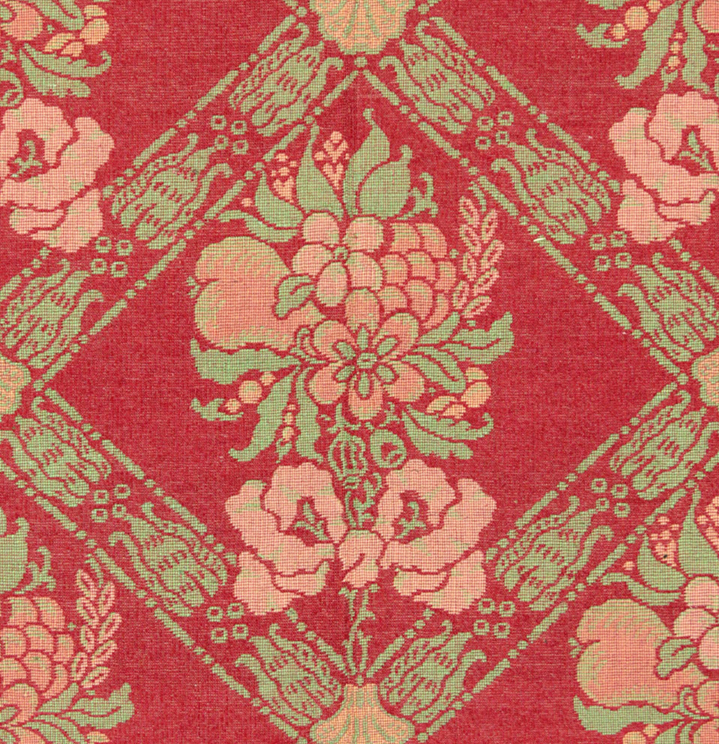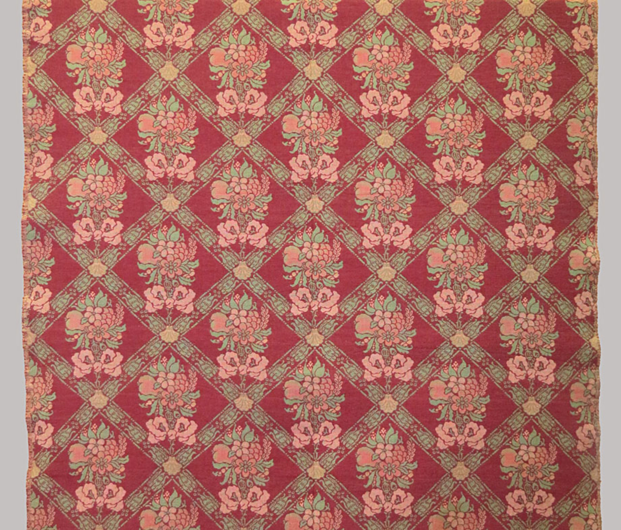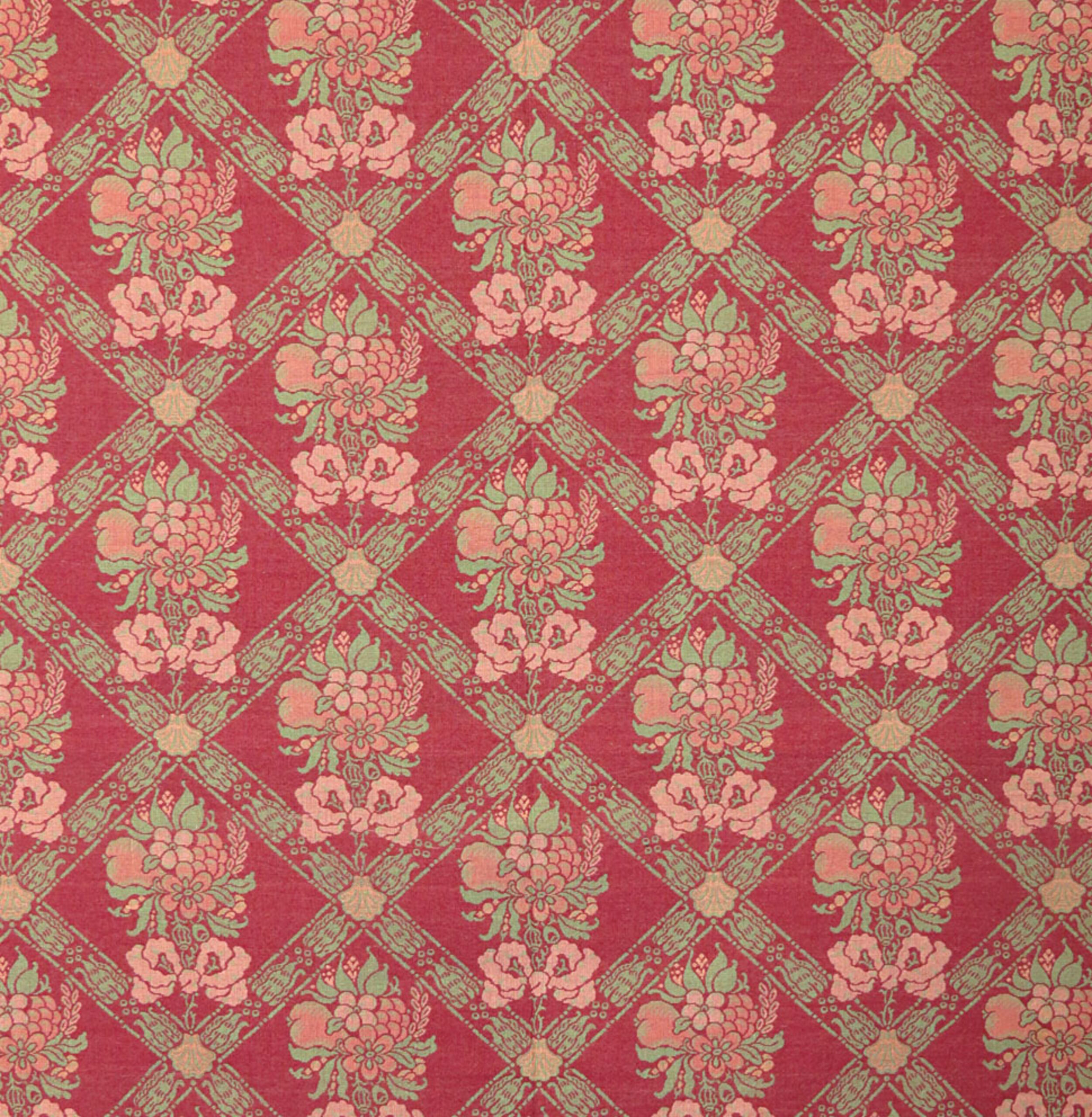 Dekorstoff, Rautengitter mit Blumensträußen und Maschen, auf rotem Grund, Anonym, MAK Inv.nr. T 6662