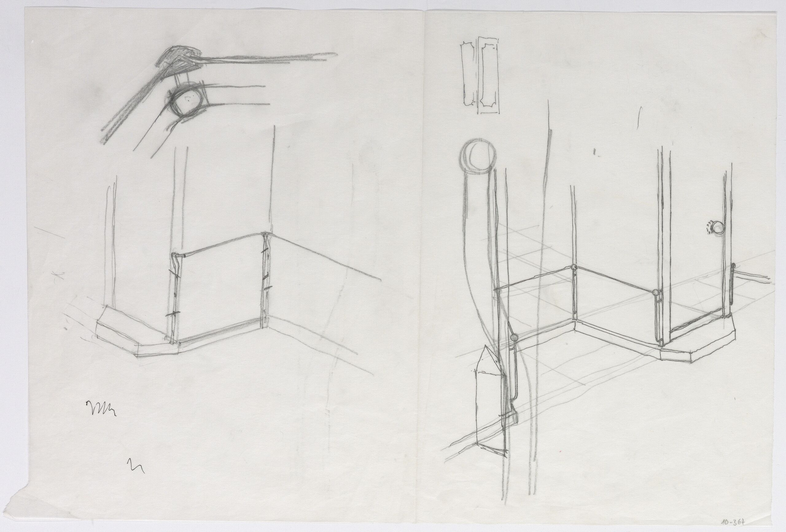 Skizze, Recto Detailansicht von dem Geschäftsportal der Galerie Sailer in Wien, Verso Detailansicht von dem Geschäftsportal der Galerie Sailer in Wien, Anna-Lülja Praun, MAK Inv.nr. KI 16475-10-367