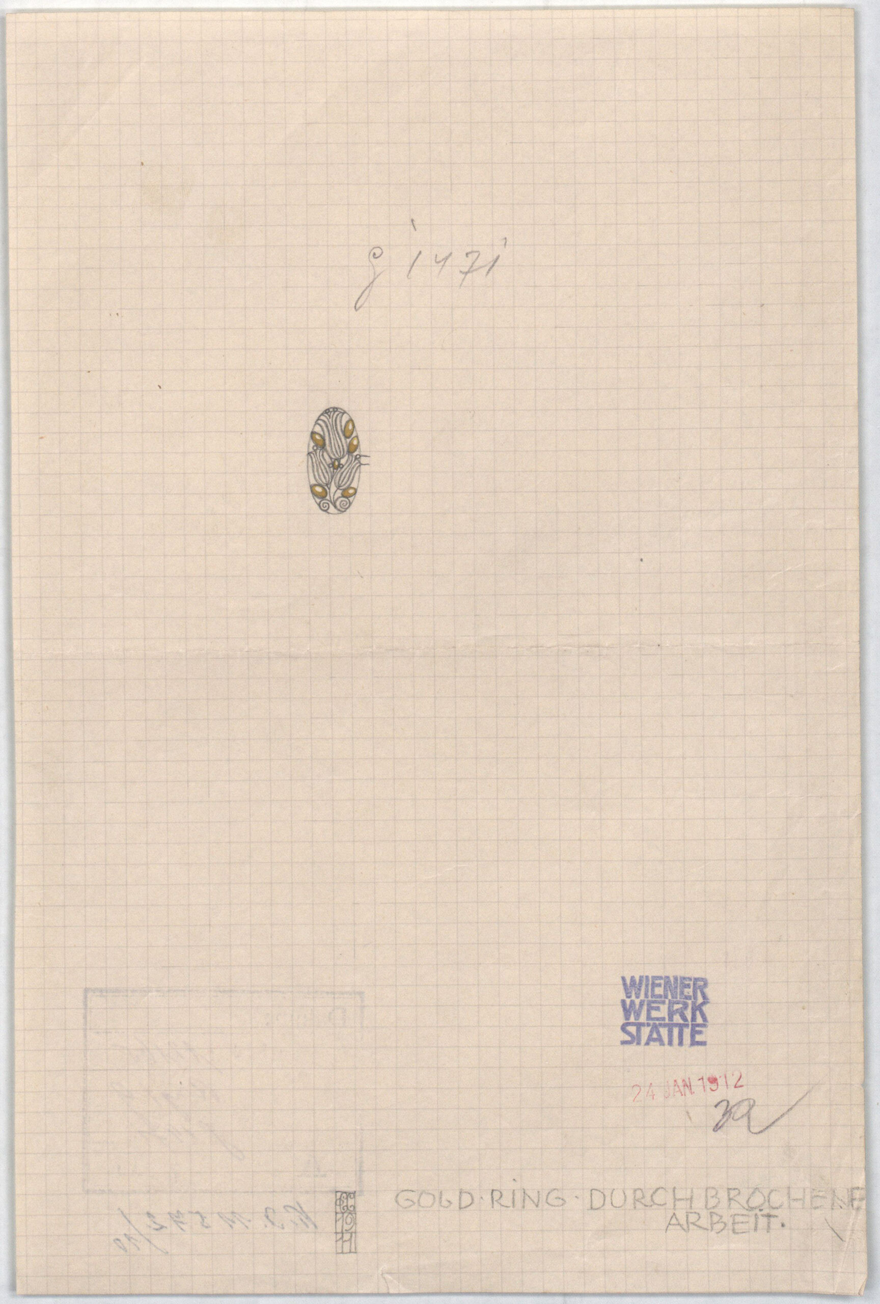 - Text am Objekt: GOLDRING DURCHBROCHENE ARBEITSignatur, 1911Stempel/inventarisiert: 24.Jan.1912 (Paraphe)