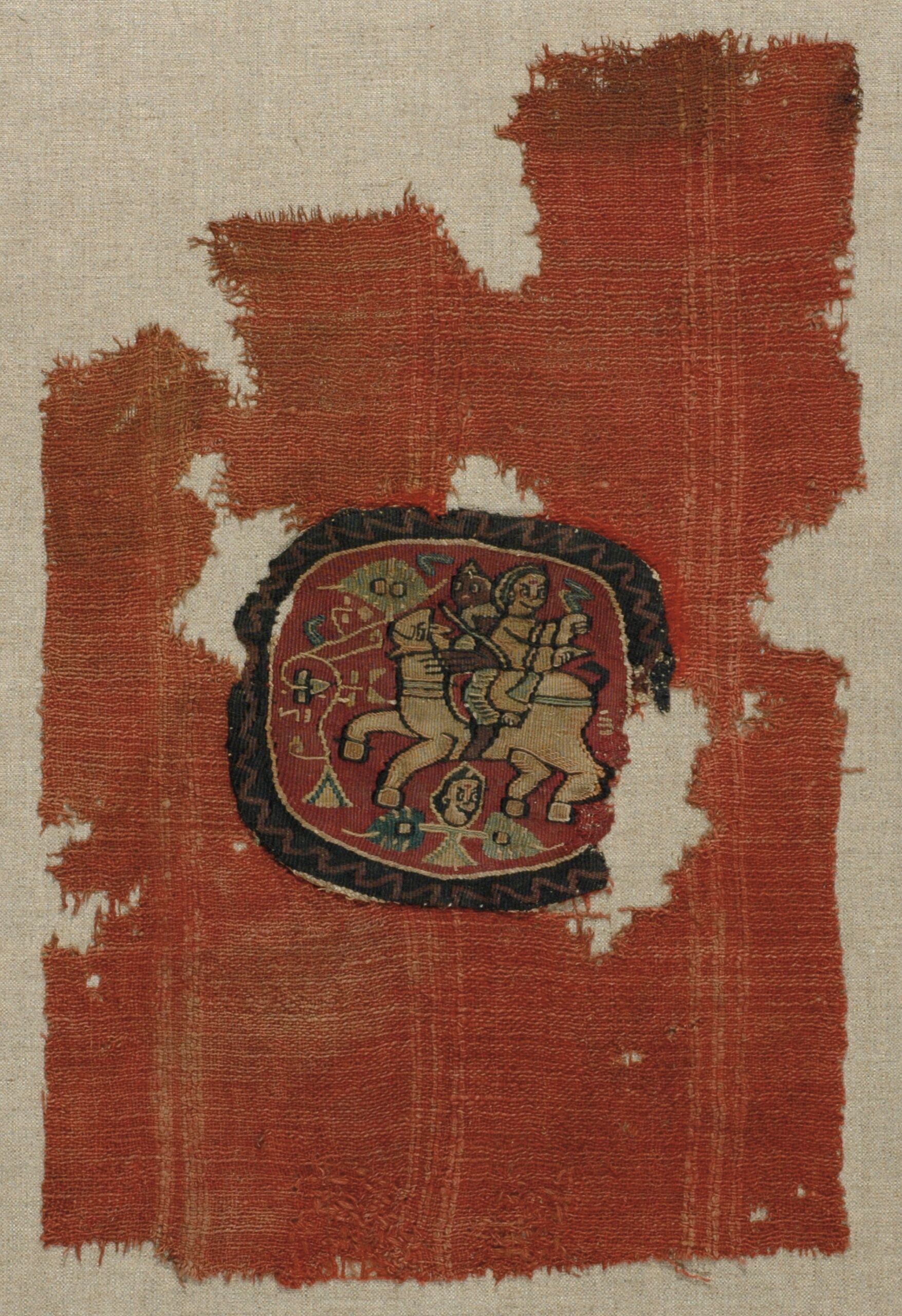 Gewebefragment, Rundes Zierstück (Orbiculus); ein Pferd mit zwei Reitern (Joseph und der Ismaelit), Anonym, MAK Inv.nr. T 417