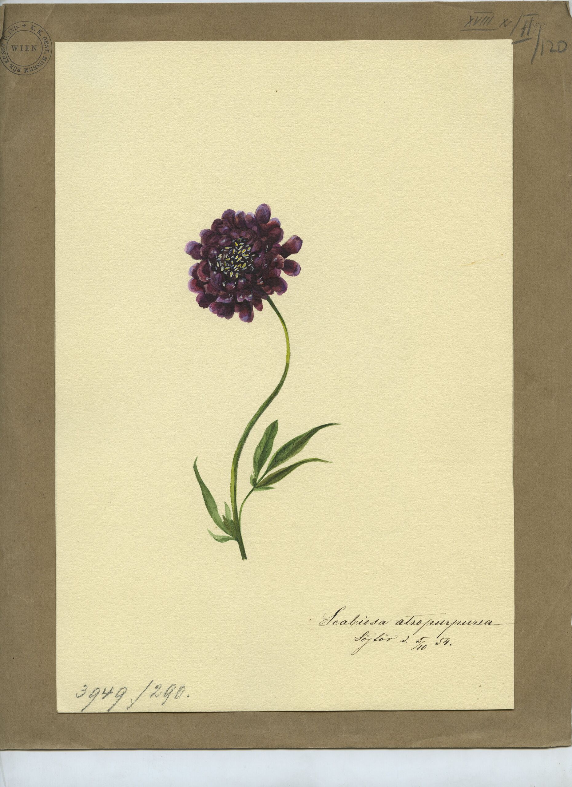 Blumendarstellung, Samt-Skabiose, Euphemia von Kudriaffsky, MAK Inv.nr. KI 3949-290
