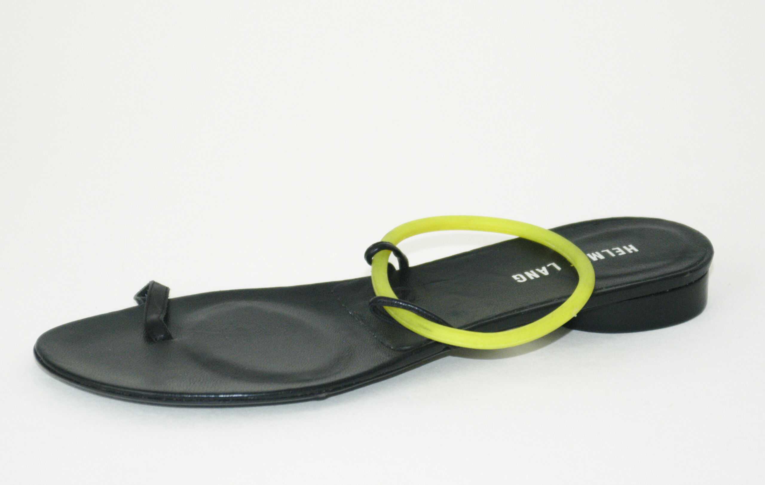 Schuh, Sandale mit Gummiring - schwarz/neongrün, Helmut Lang (Firma), MAK Inv.nr. LNI 259