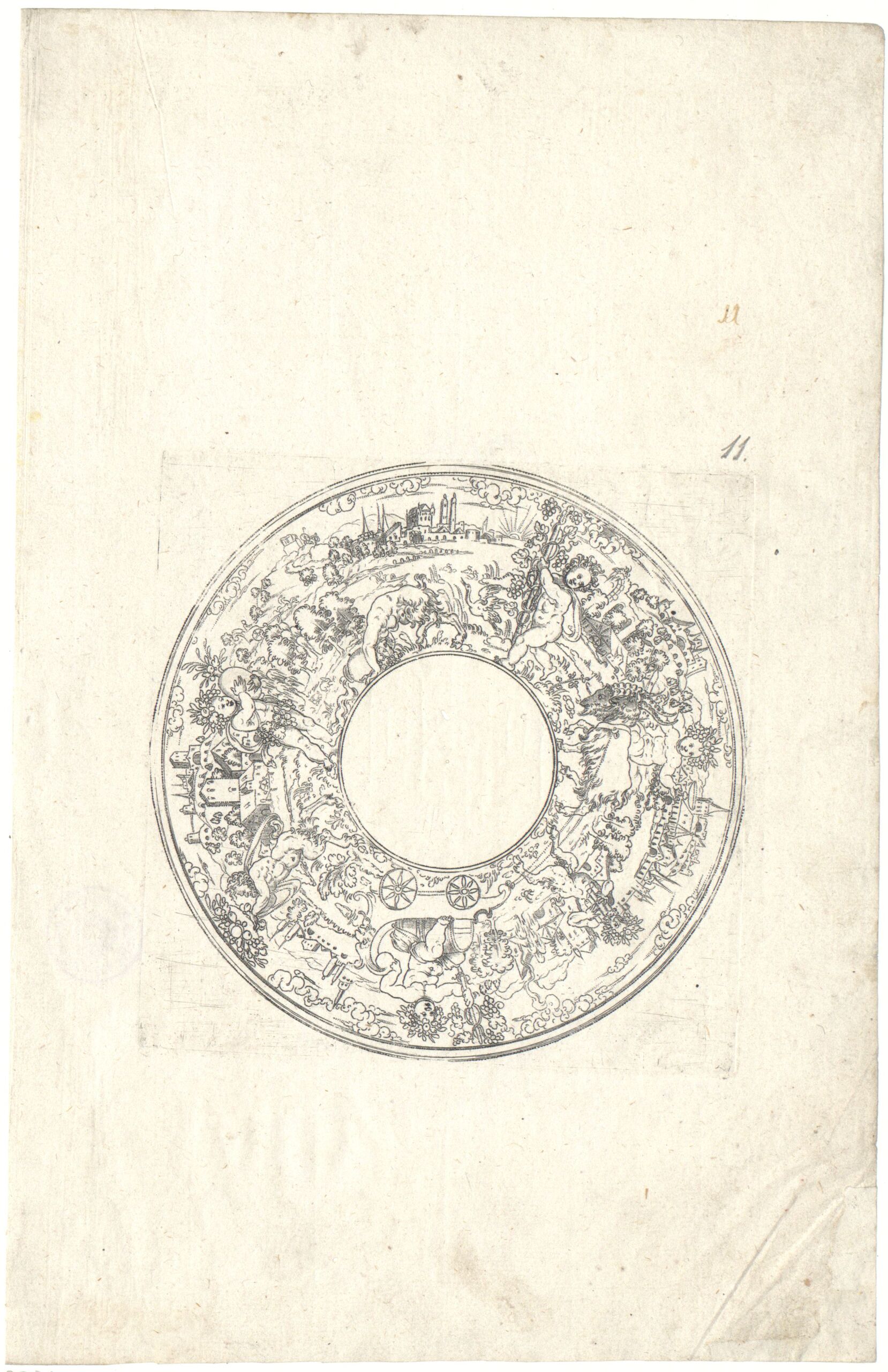Ornamentstich, Schalenzeichnung mit dem Triumph des Bacchus, Jonas Silber, MAK Inv.nr. KI 2224-11