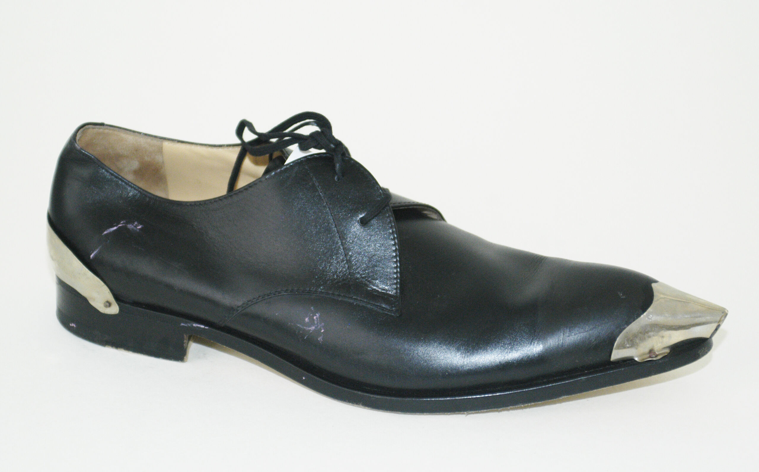 Schuh, Schnürhalbschuh (Derby) mit Metallferse und Metallspitze - schwarz/silber, Helmut Lang (Firma), MAK Inv.nr. LNI 242