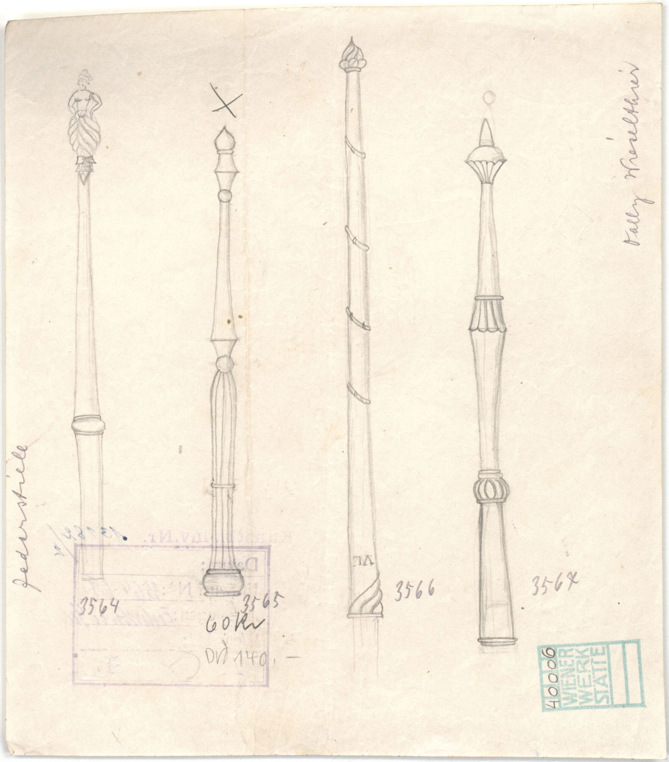 Entwurf, Schreibgarnitur: vier "Federstiele", Wiener Werkstätte, MAK Inv.nr. KI 13182-2