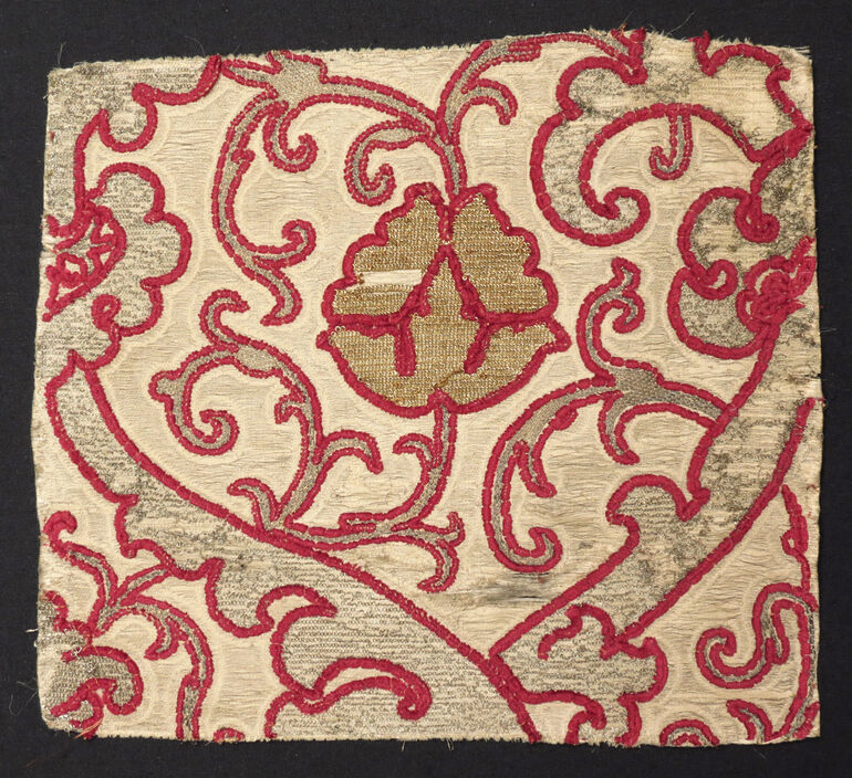 - Seidendamast mit Goldstickerei (deskriptiver Titel)