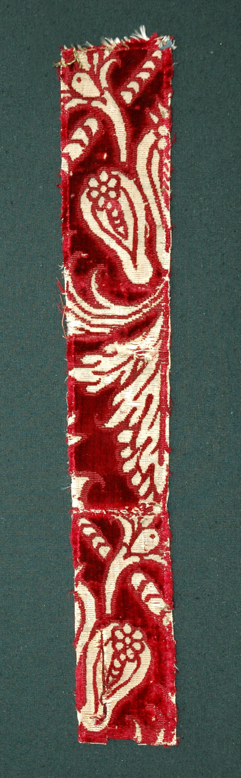 - Seidensamt mit silbernen Blatt-und Granatapfel-Motiv (deskriptiver Titel)
