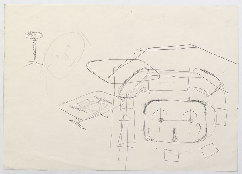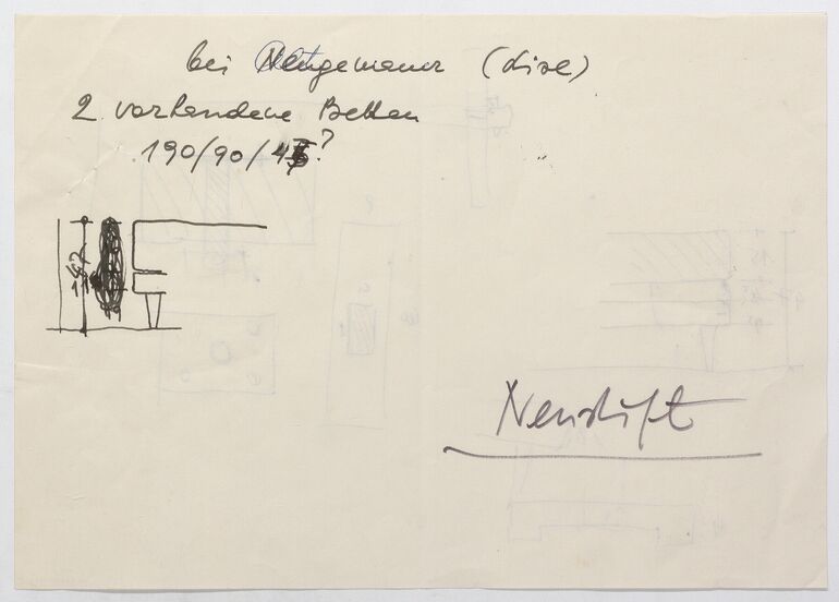 Skizze, Seitenansicht einer Sitzbank für den Erker, Anna-Lülja Praun, MAK Inv.nr. KI 16475-5-93