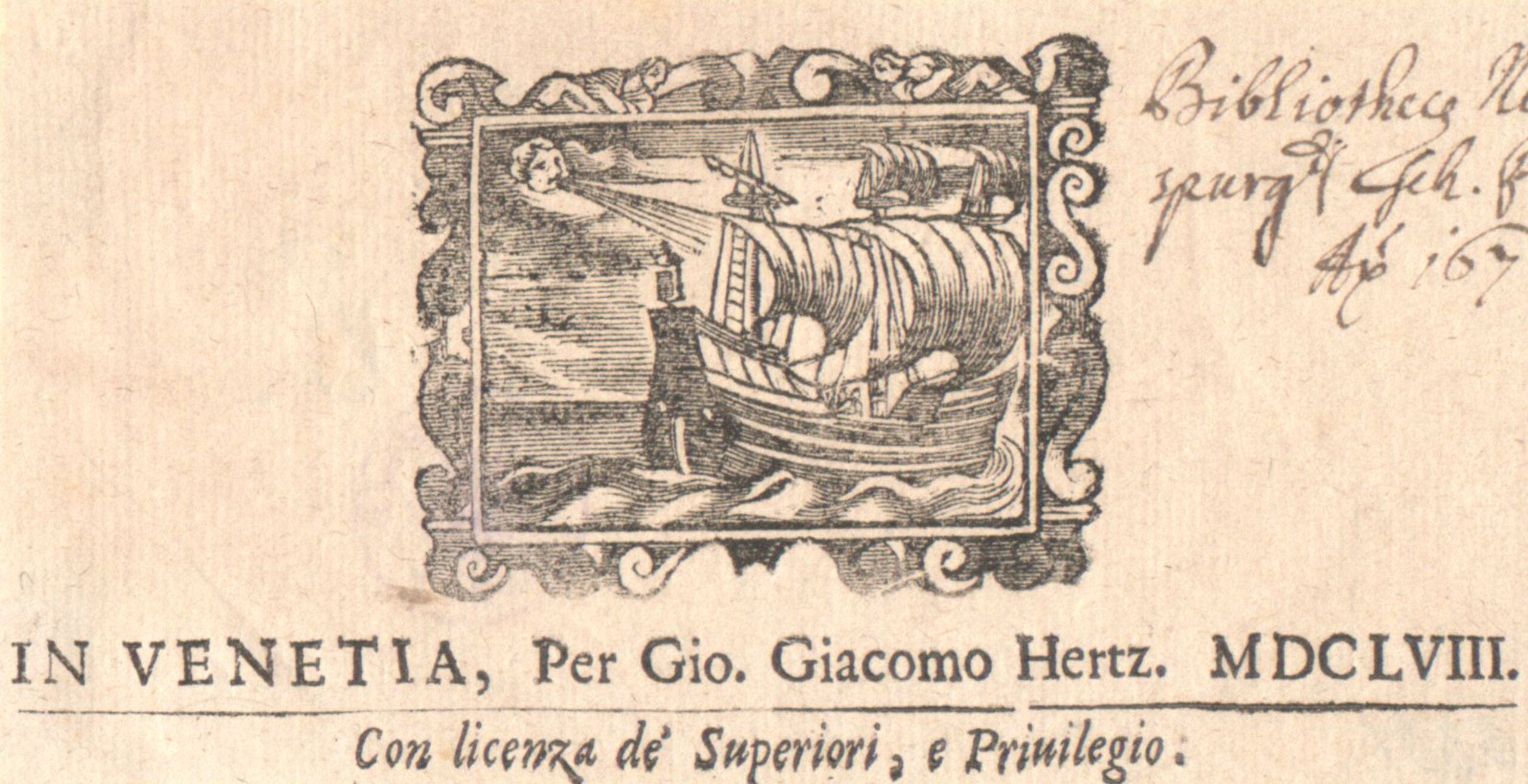 - Text am Objekt: IN VENETIA, Per Gio. Giacomo Hertz. MDCLVIII...