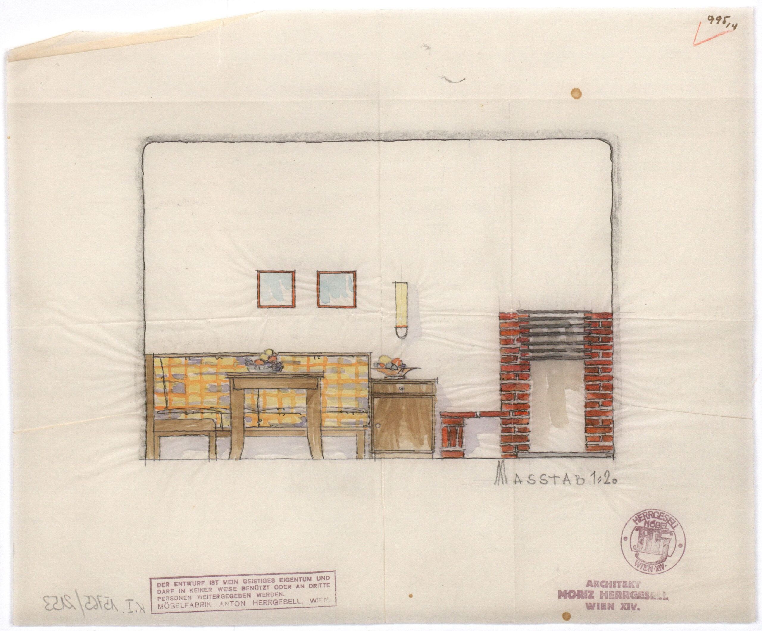 Entwurf, Sitzecke, Schrank und Kamin, Moritz Herrgesell, MAK Inv.nr. KI 15765-2153