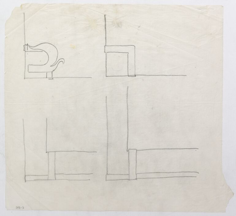 Skizze, Skizze eines Bücherregals mit Kästen, Grundriss, Anna-Lülja Praun, MAK Inv.nr. KI 16475-6-596-1