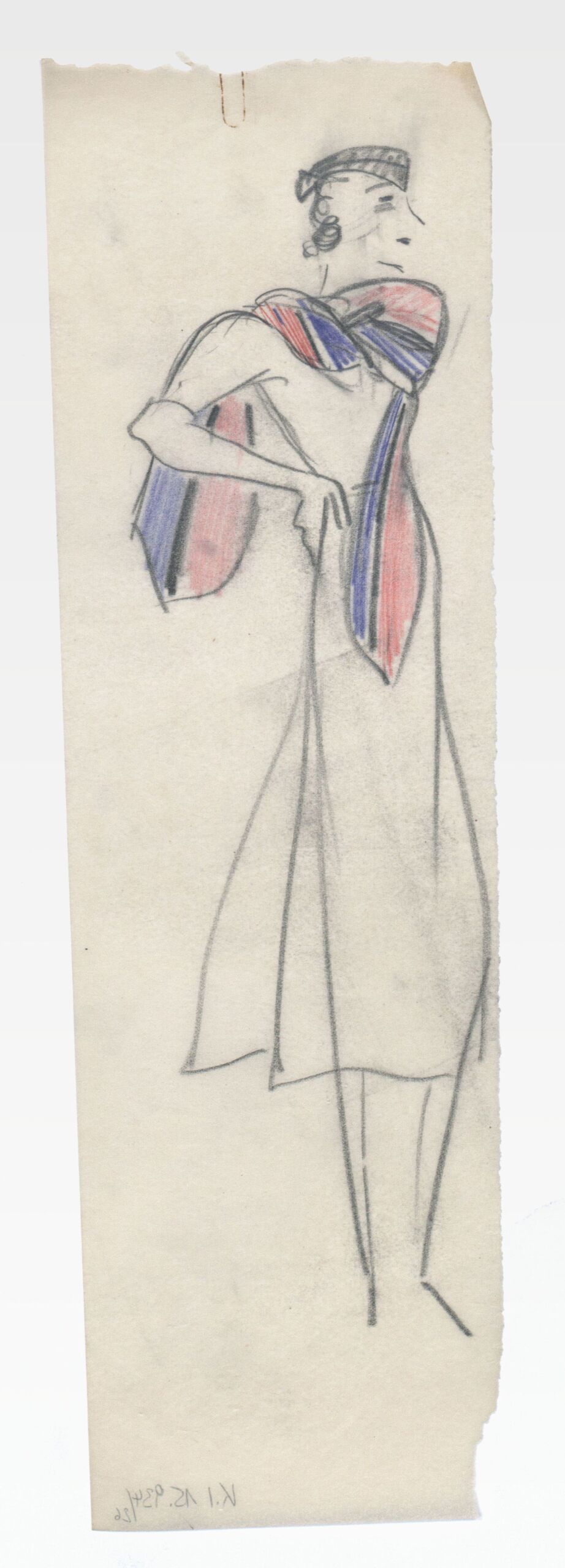 Modeentwurf, Skizze eines Kleides mit Schal/ Stola, Ernst Deutsch-Dryden, MAK Inv.nr. KI 15934-26