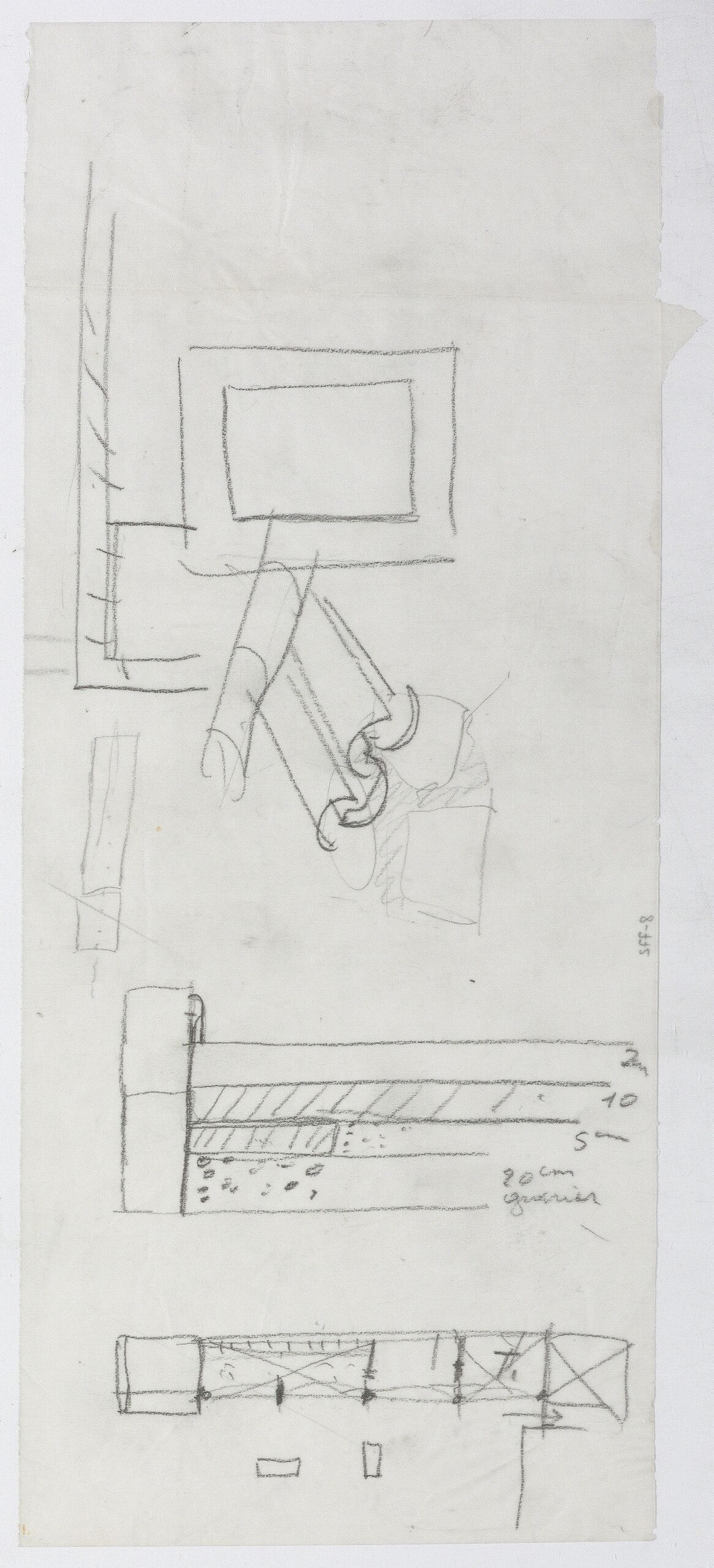 - Skizze von einem Fenster und Aufbau von einem Boden, diverse Skizzen (vom Bearbeiter vergebener Titel)