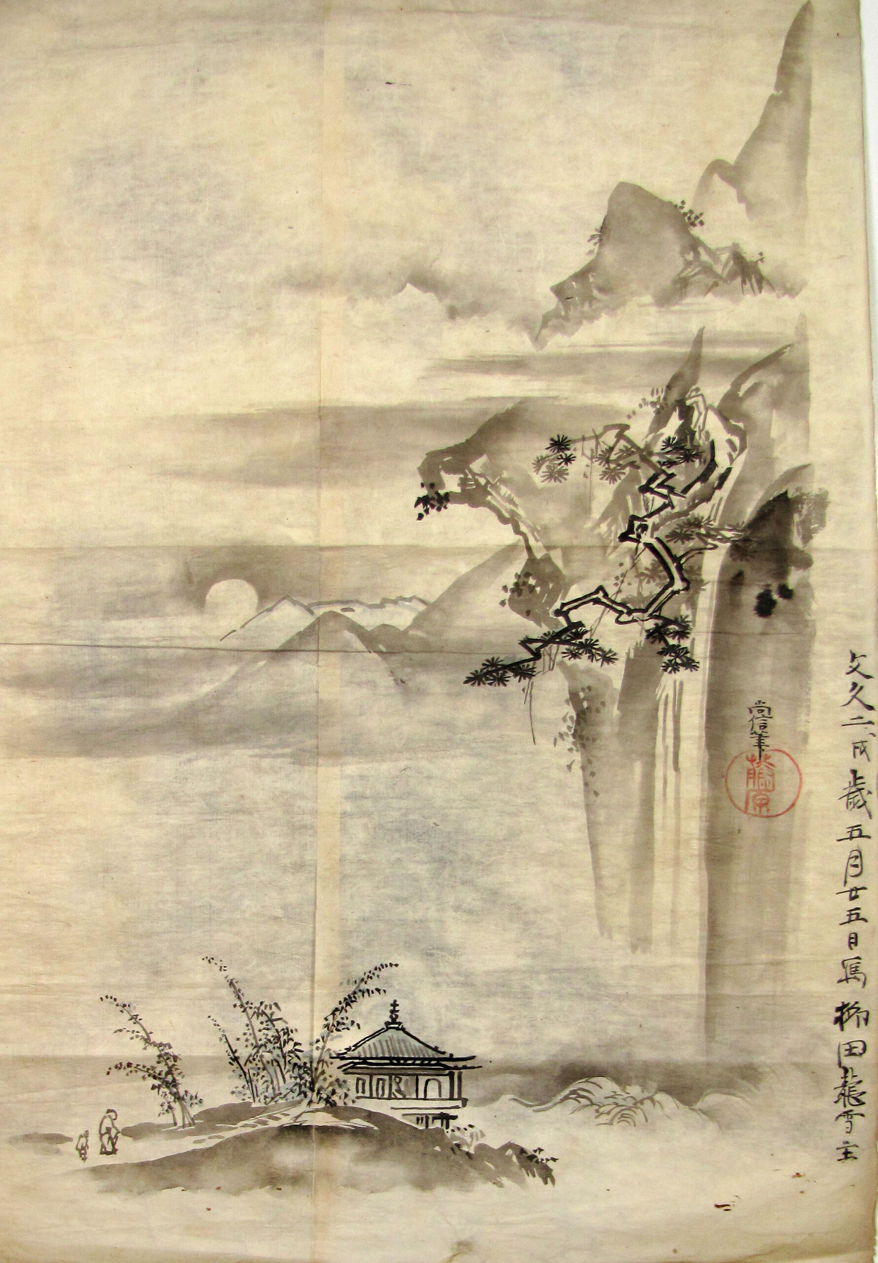 - Text im Bild: 1)Bunkyū 2, Jahr des Hundes, 25.Mai gemalt, gehört Yanagida Ryūsetsu. Nach Naonobu 尚信.2) Bunkyū 2, Jahr des Hundes, 23.Mai gemalt, gehört Yanagida Ryūsetsu. Nach Jiteki (?).