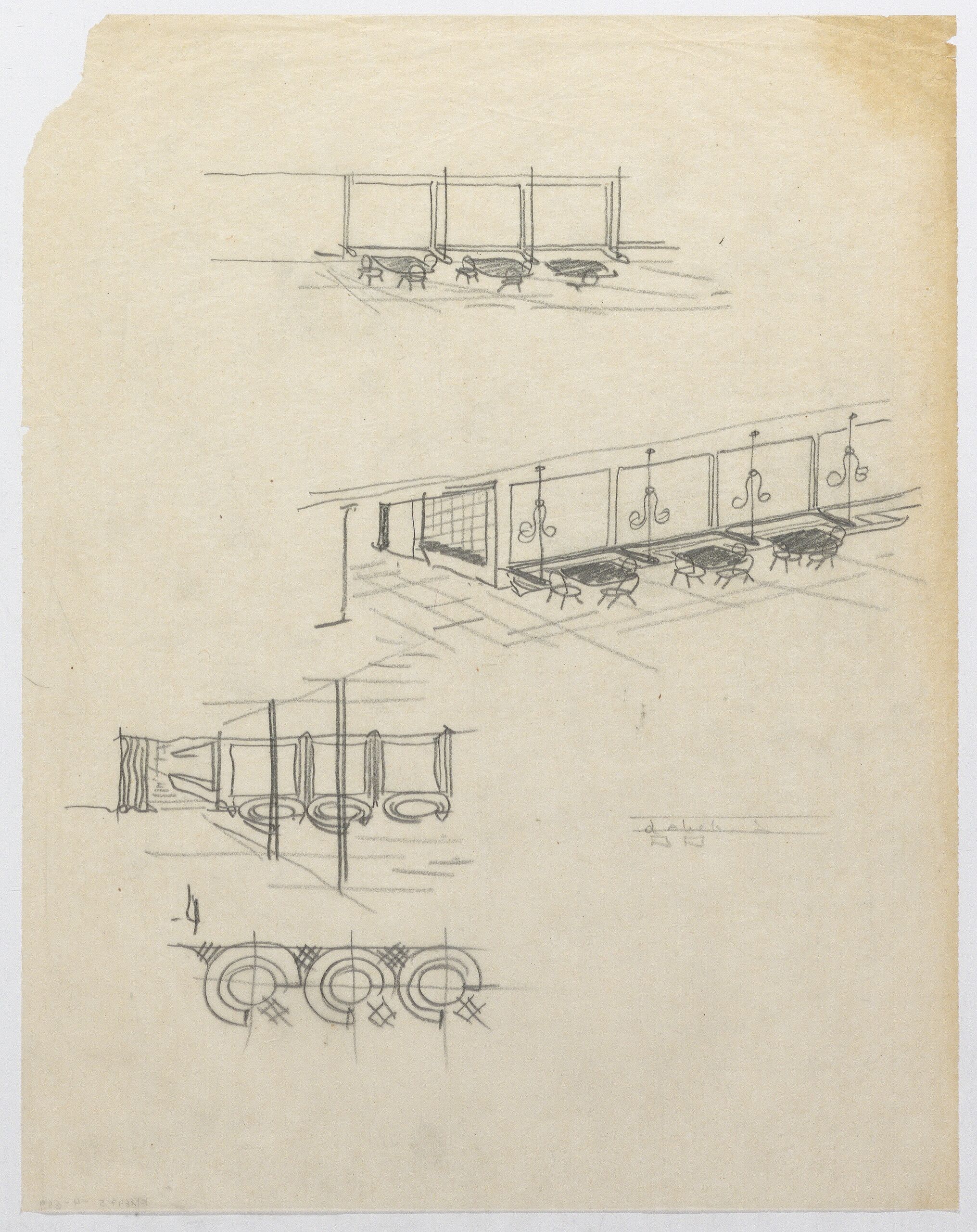 Skizze, Skizzen der Tischordnung im Innenbereich des Kaffeehauses, Anna-Lülja Praun, MAK Inv.nr. KI 16475-4-779