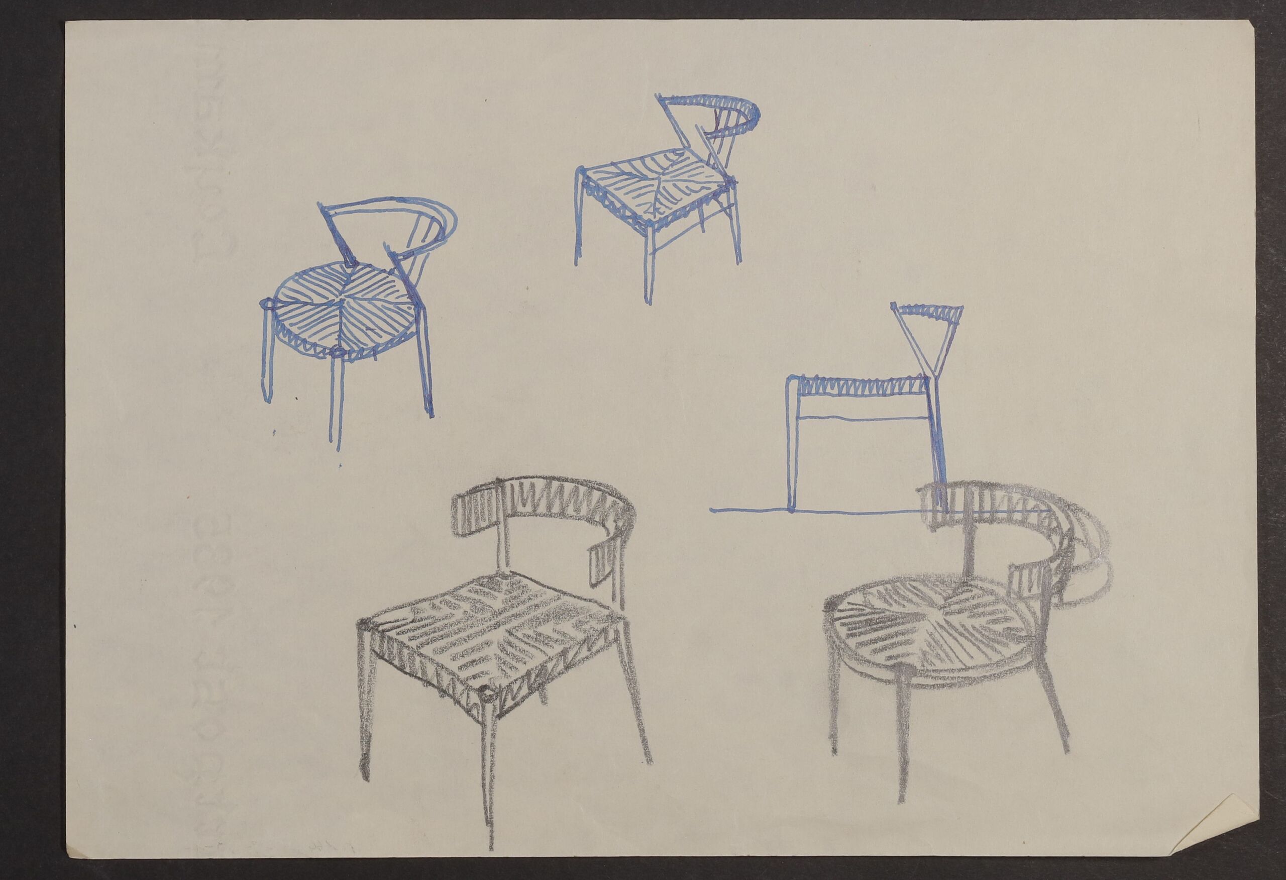- Skizzen und Seitanansicht eines Sessels (vom Bearbeiter vergebener Titel)