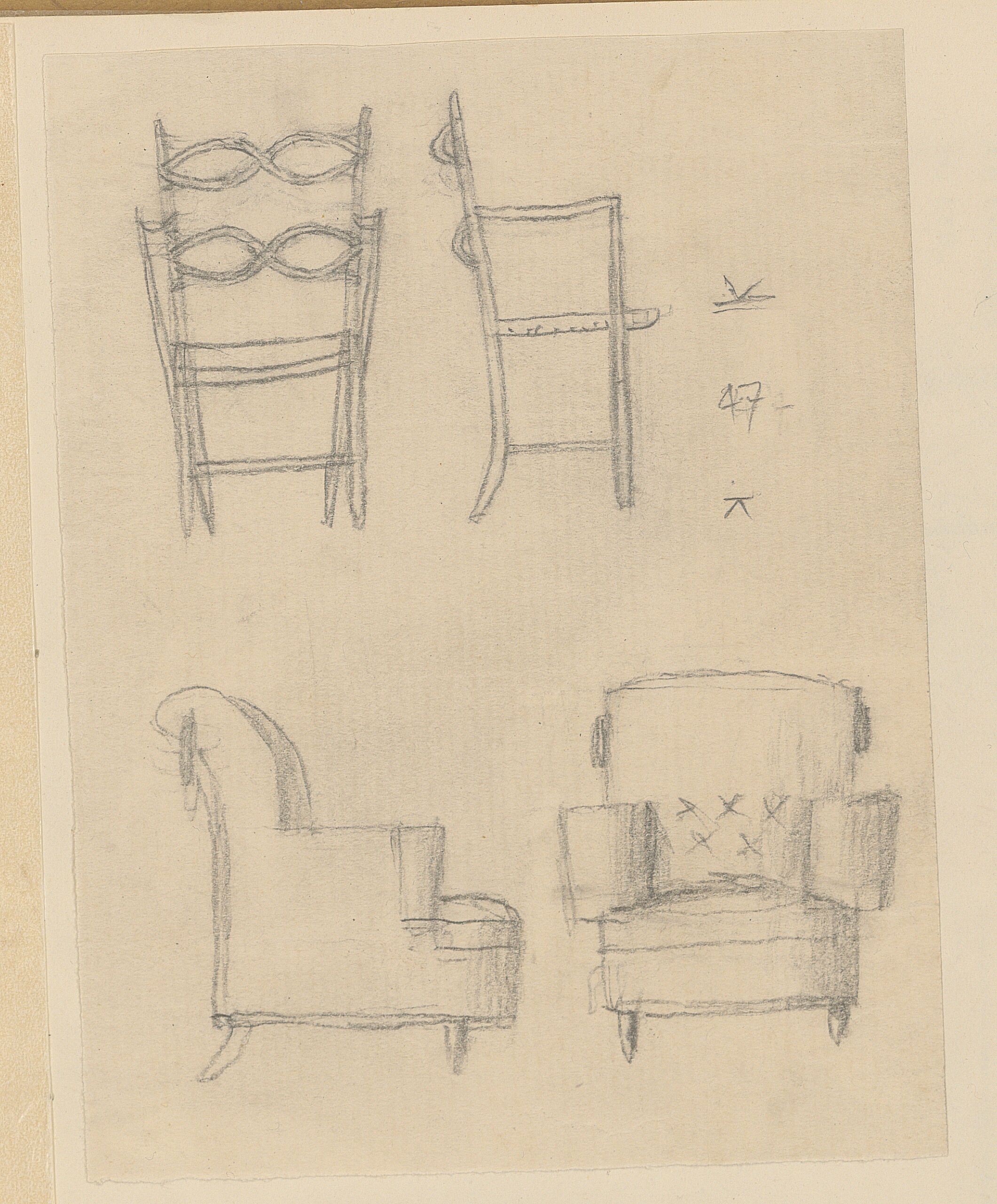 Skizze, Skizzen zu einem Sessel und einem Fauteuil, Viktor Lurje, MAK Inv.nr. KI 10460-3-21