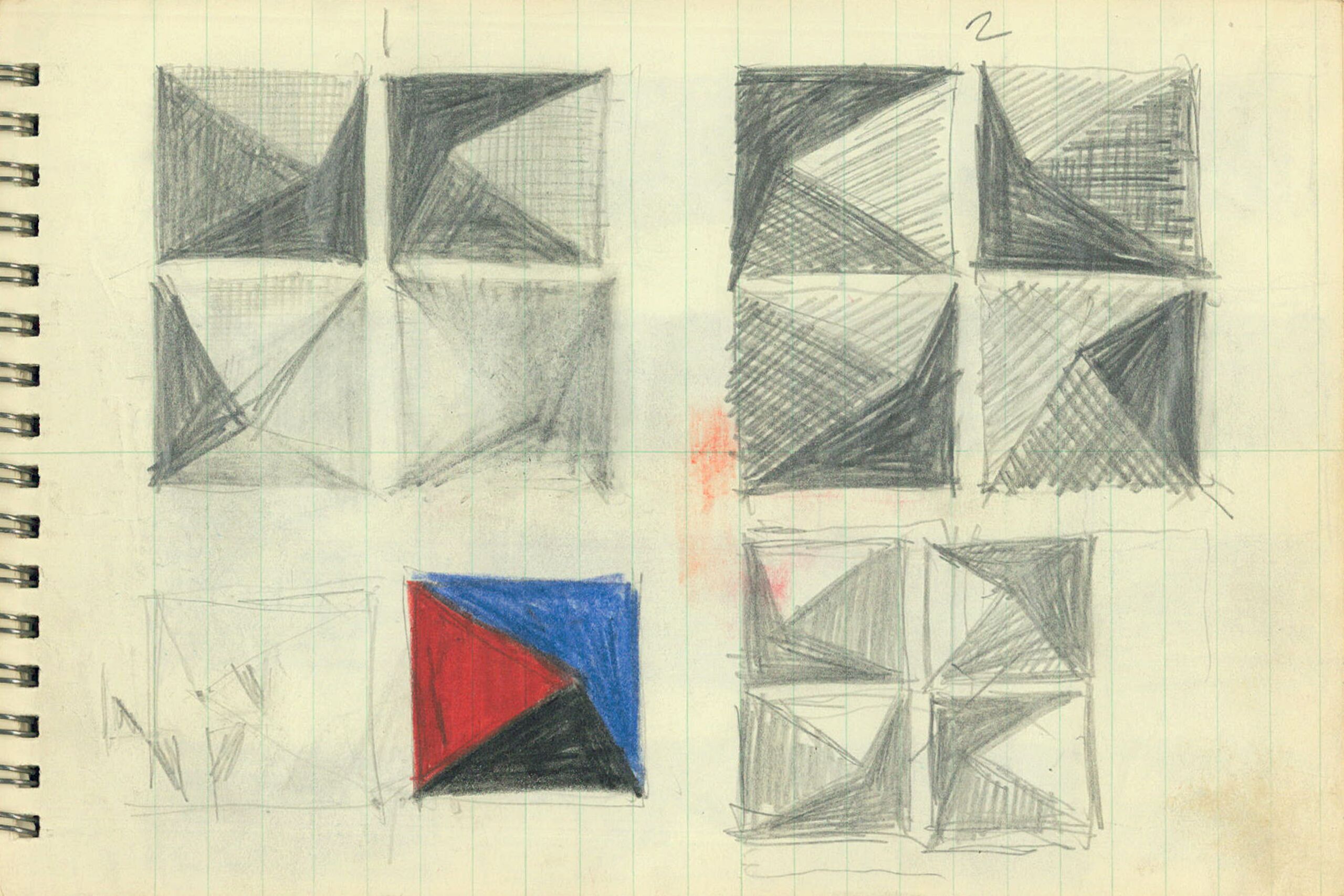 Skizzenbuch, Skizzenblock mit 33 Skizzen zur Non-Objective Art, einige Notizen, beigelegt: Season's Greetings and Best Wishes Carla Binder 1982 (zur Ausstellung in der Neuen Galerie Linz, September - Oktober 1982), 2 Zettel mit einem Interview mit Dr. O.Z., 1 Zettel mit einer Auflistung der Skizzenbücher Joseph Binders, Joseph Binder, MAK Inv.nr. KI 14145-1820-22