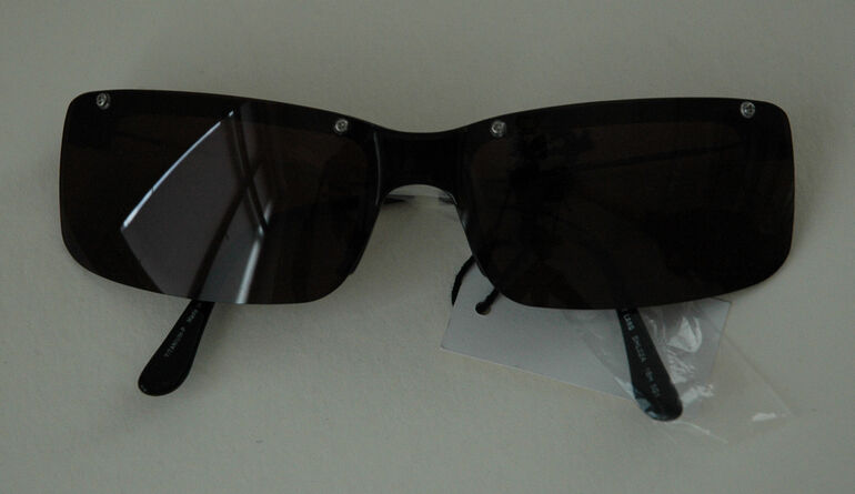 Brille, Sonnenbrille mit Vollrand - schwarz getönt/silber/beige, Helmut Lang (Firma), MAK Inv.nr. LNI 1683