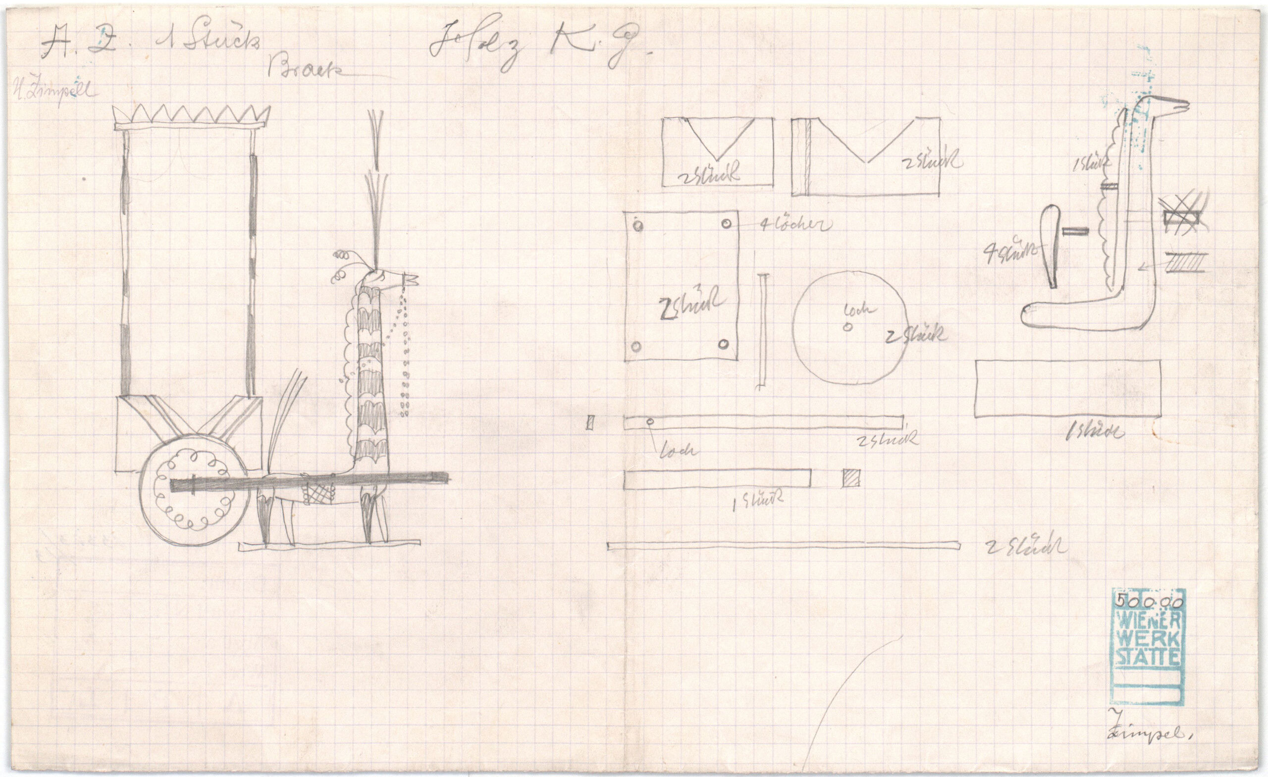 Entwurf, Spielzeug: Giraffenwagen, Wiener Werkstätte, MAK Inv.nr. KI 13303-13