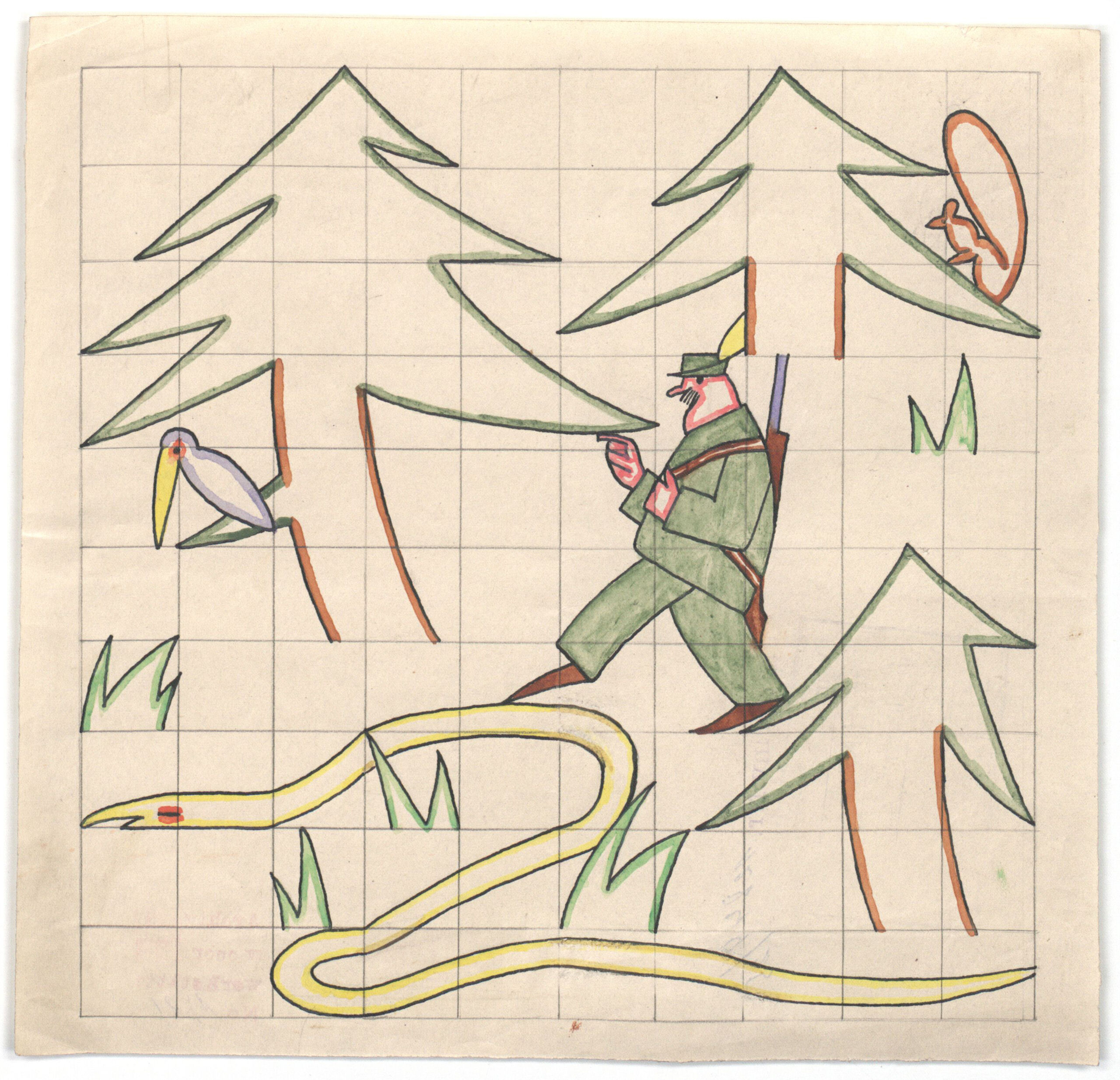 • Entwurf, Spielzeug: Legespiel, Jäger im Wald, Wiener Werkstätte, MAK Inv.nr. KI 12844-25