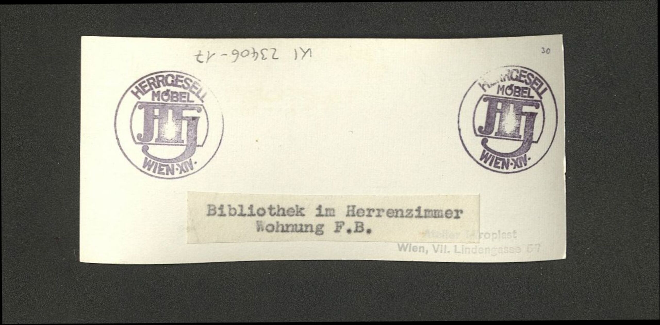 - Text am Objekt (Rückseite) : Bibliothek im Herrenzimmer / Wohnung F.B.