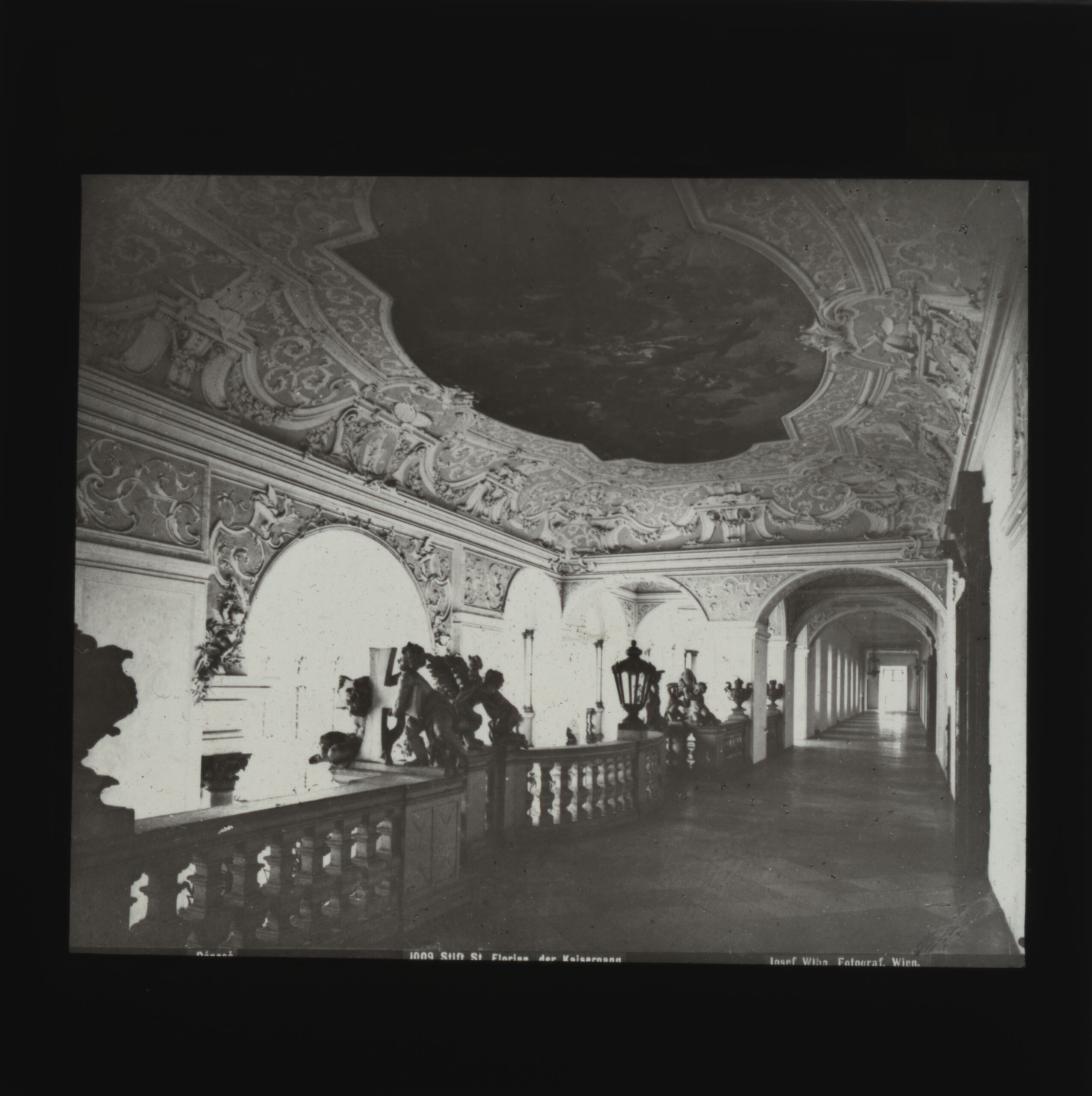 - Text am Objekt: Déposé. 1009. Stift St. Florian, der Kaisergang. Josef Wlha, Fotograf, Wien