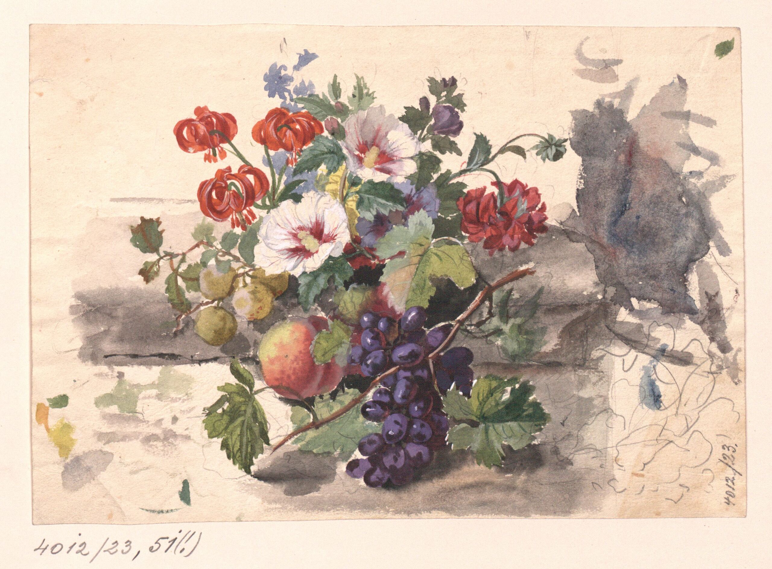 - Studie zu diversen Blumen und einer Weintraube (vom Bearbeiter vergebener Titel)