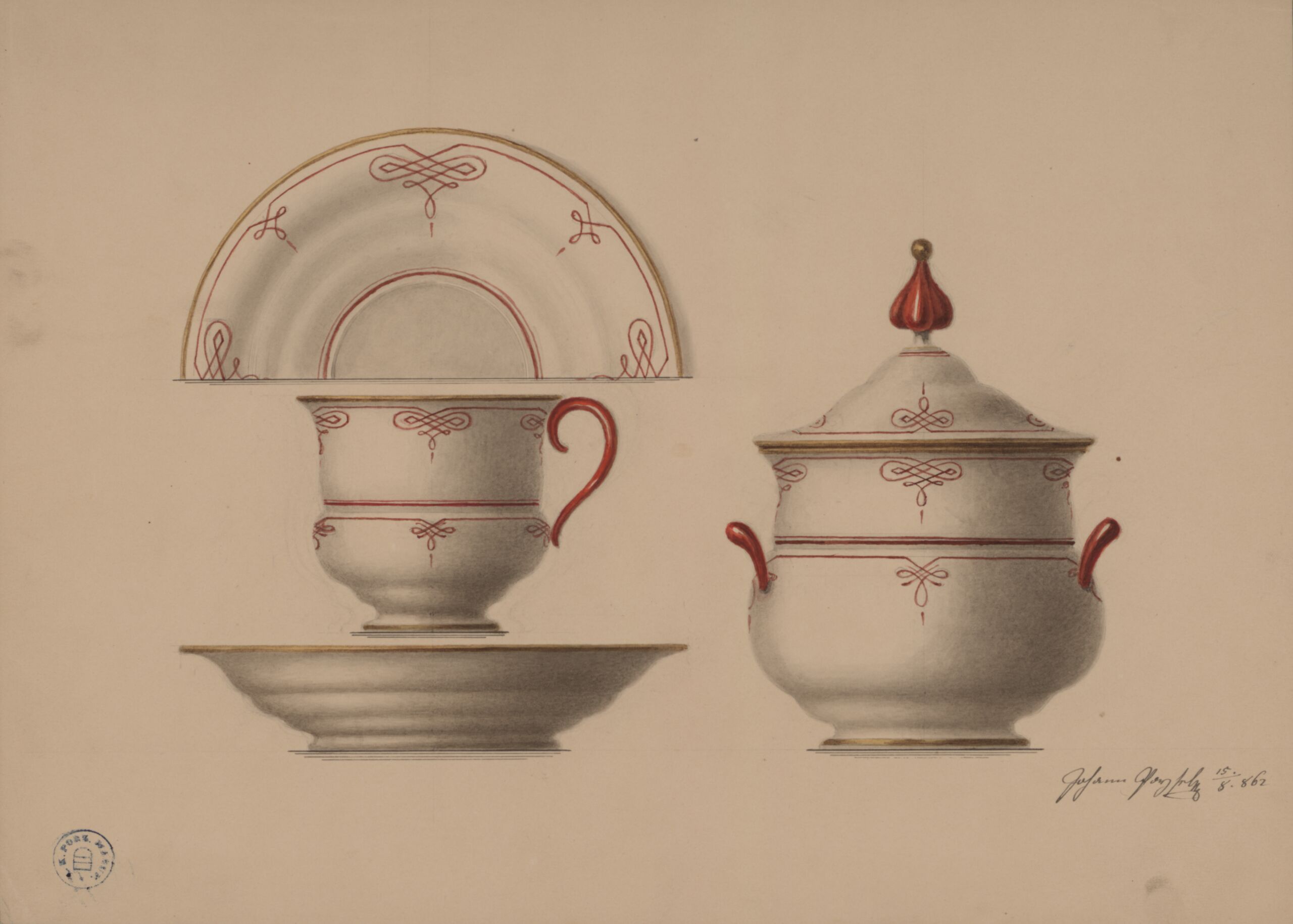 Entwurf, Tasse und Zuckerdose, Johann Poysel, MAK Inv.nr. KI 15165-802-129