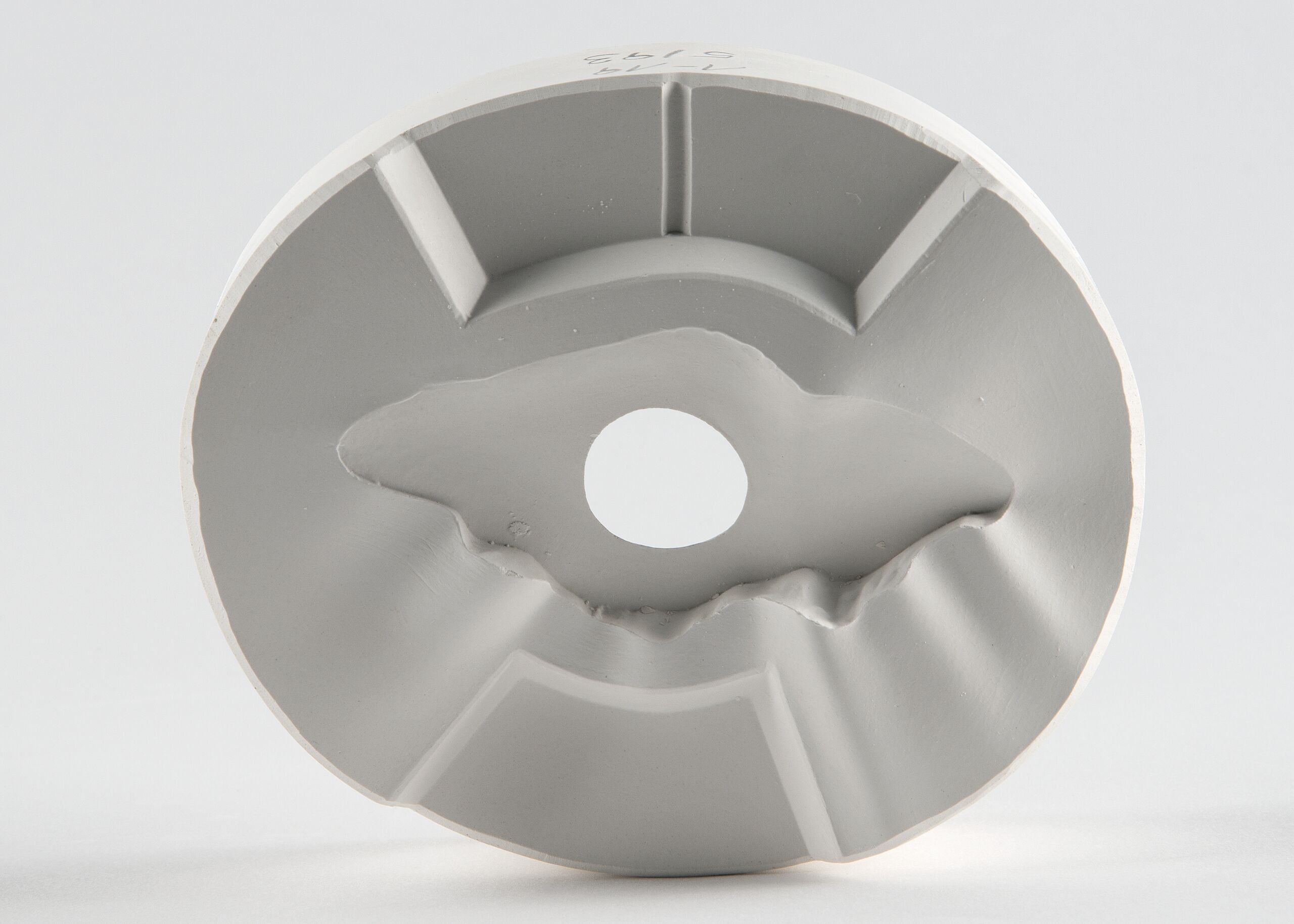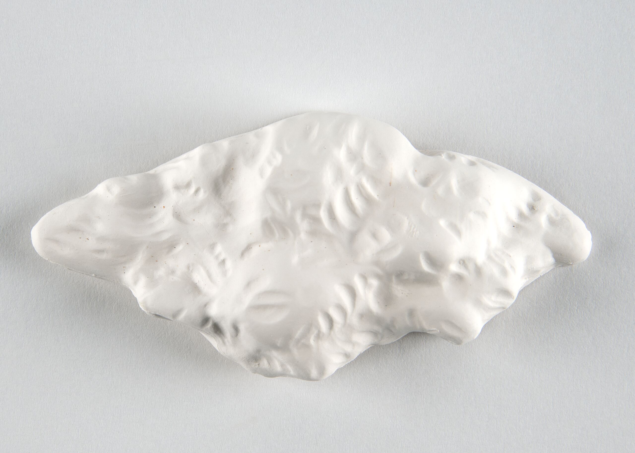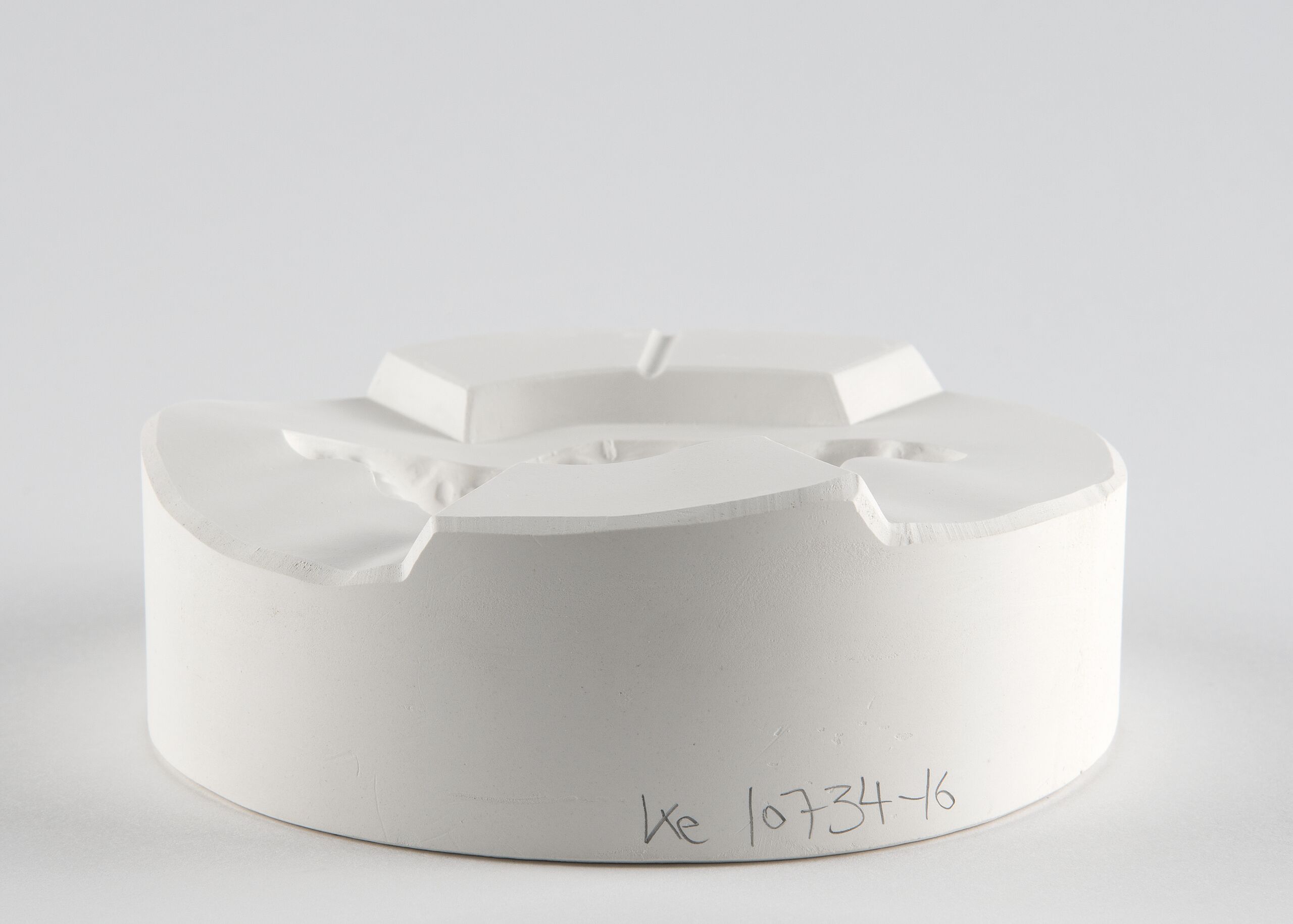 Zweiteilige Arbeitsform aus Gips ohne Keile, mit den aus Porzellan gegossene Teilen, ungebrannt