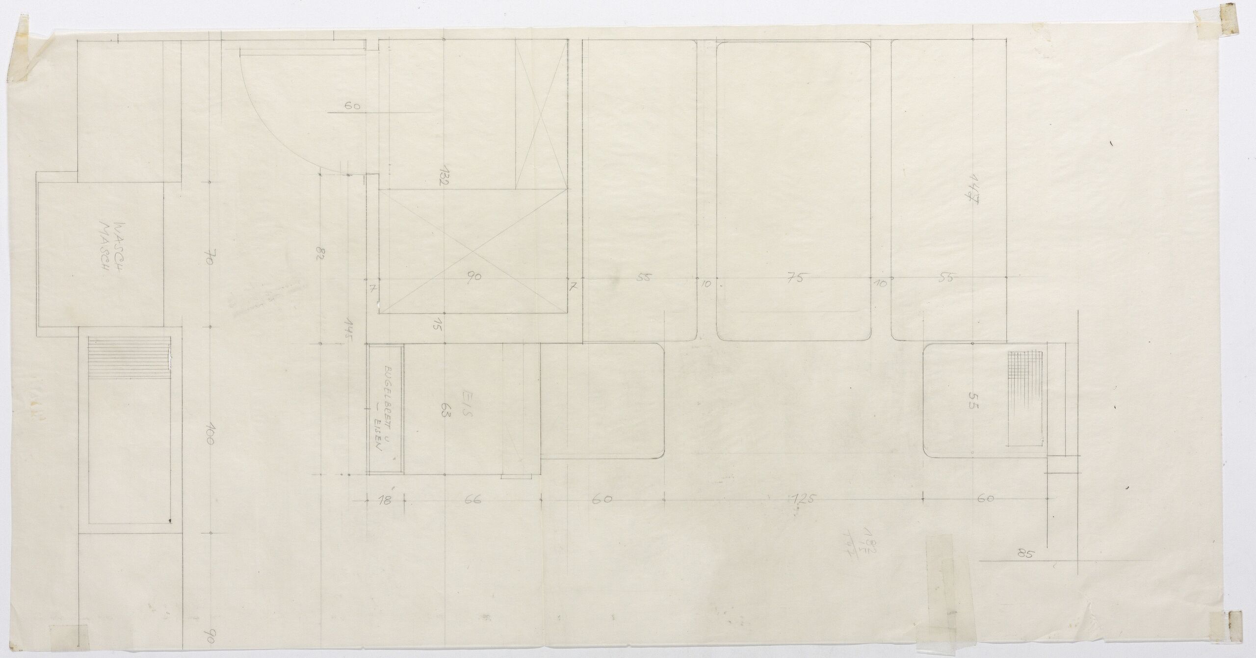 Grundriss, Teil des Grundrisses der Küche mit Esstisch, Anna-Lülja Praun, MAK Inv.nr. KI 16475-5-537