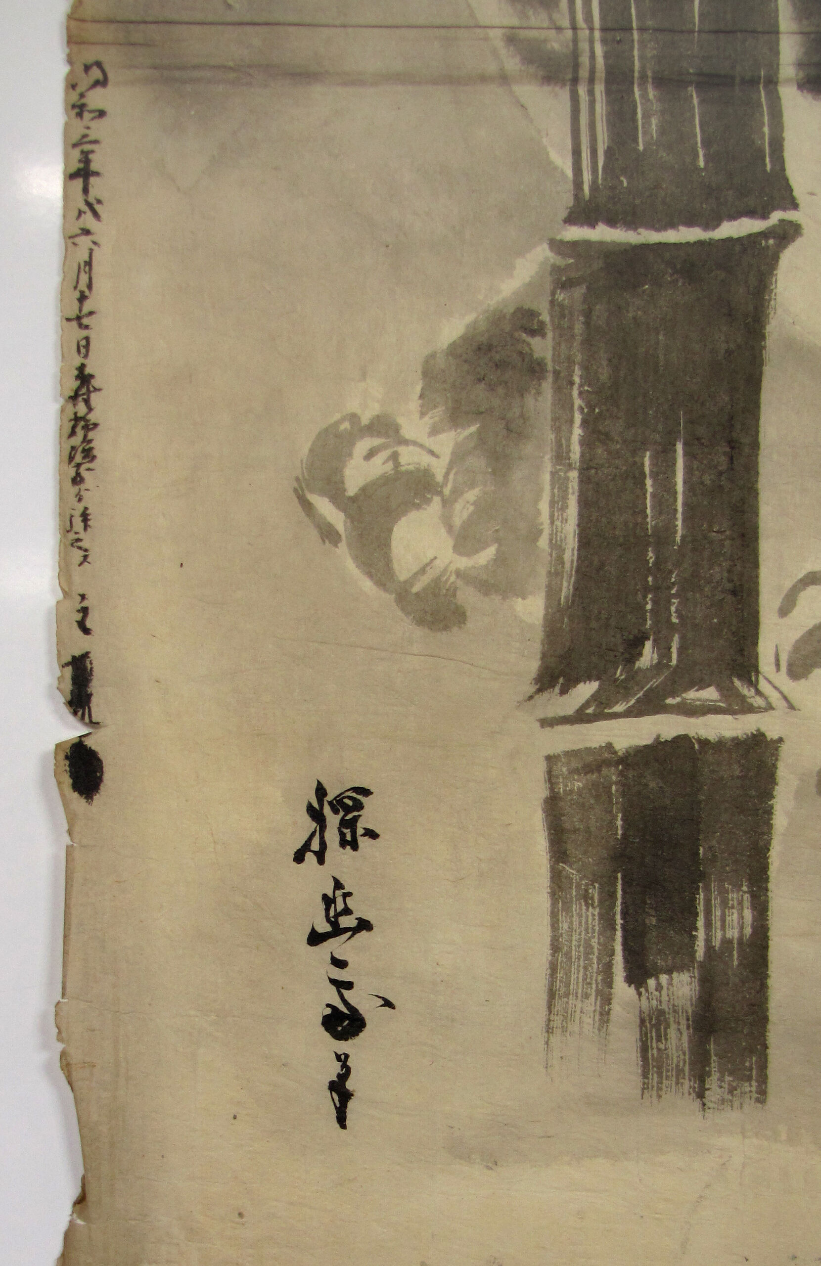 - Text im Bild: links: Meiwa 3.Jahr, Jahr des Hundes, 17. Juni, gemalt nach Tan'yūrechts: Besitzer: Yanagida Ryūsetsu