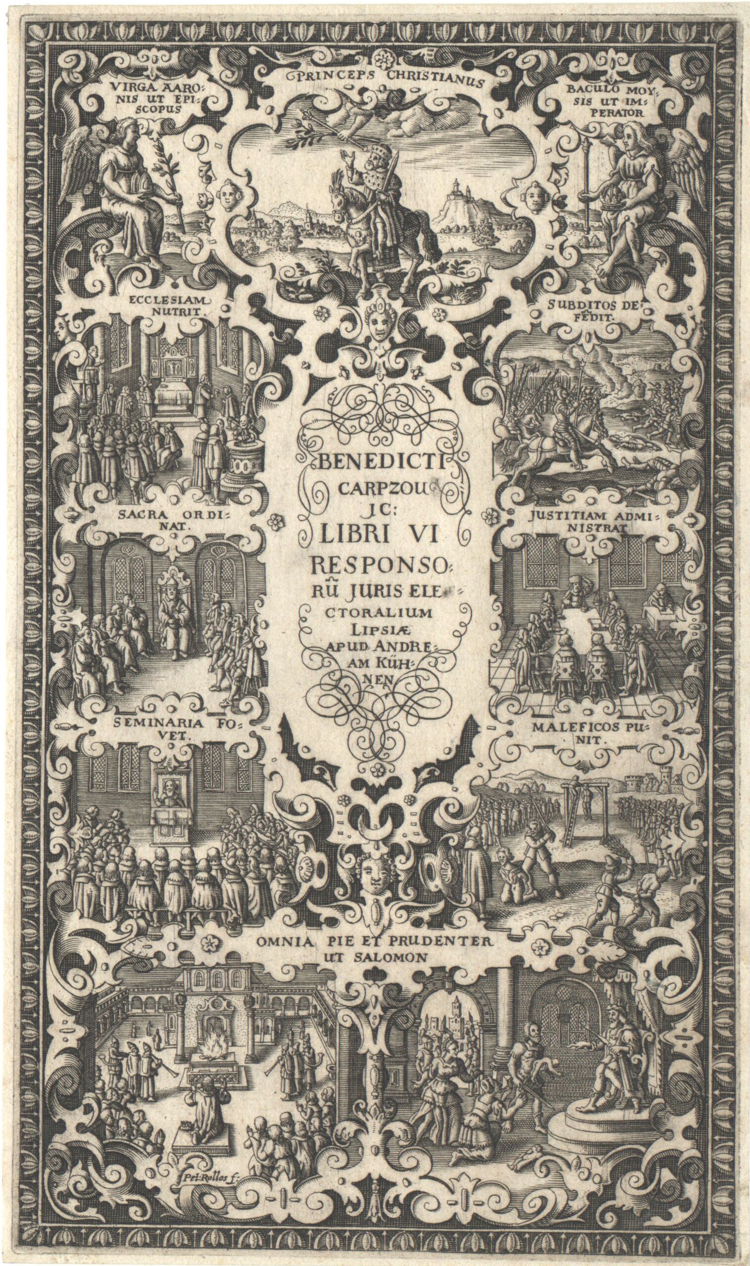 Ornamentstich, Titelverzierung: Benedicti Carpzoujc Libri VI Responsorum Juris Electoralium Lipsiae apud And. Kühnen, Peter Rollos, MAK Inv.nr. KI 918