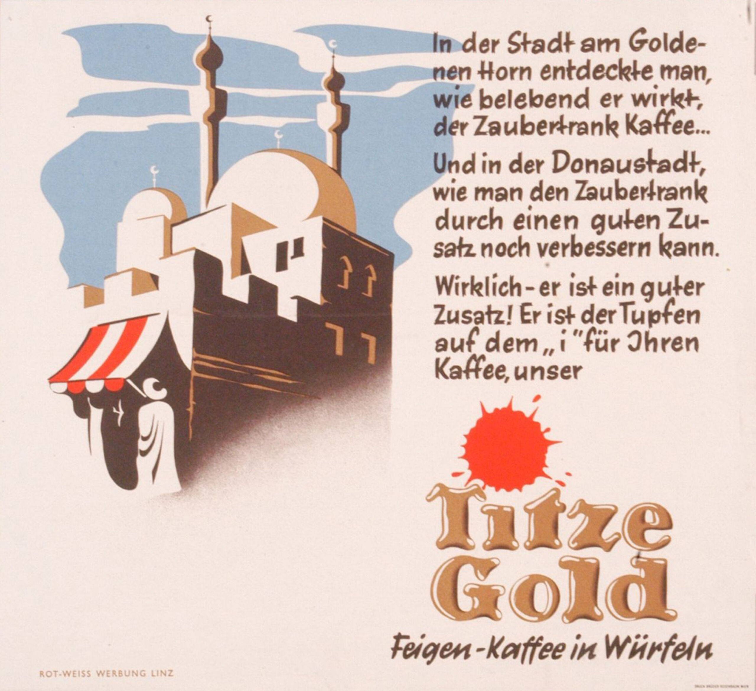 - Text am Objekt: In der Stadt am Goldenen Horn... Titze Gold. Feigen Kaffee in Würfeln