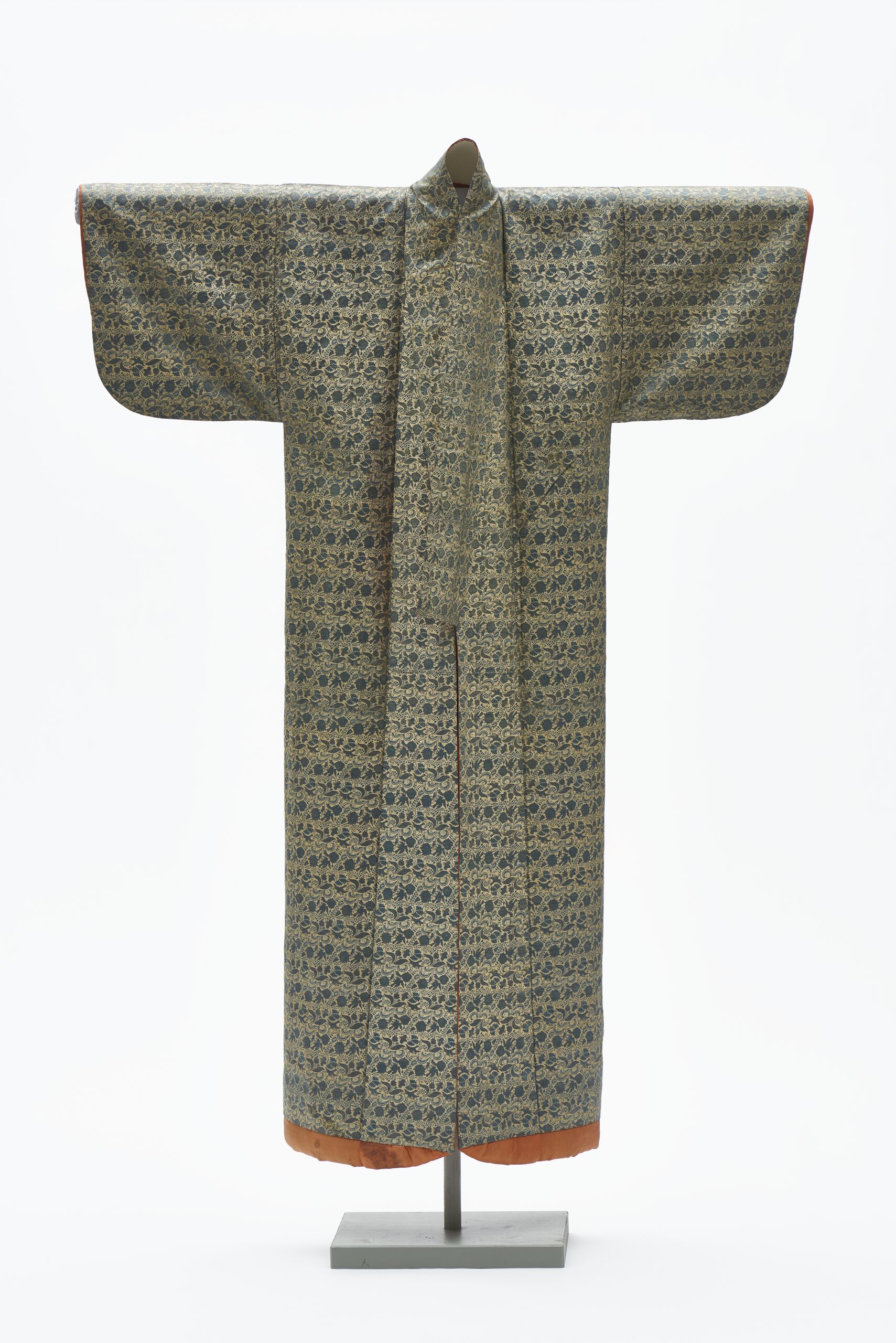 - Übergewand (Uchikake) - dichtes Rankenmuster auf beigem Grund