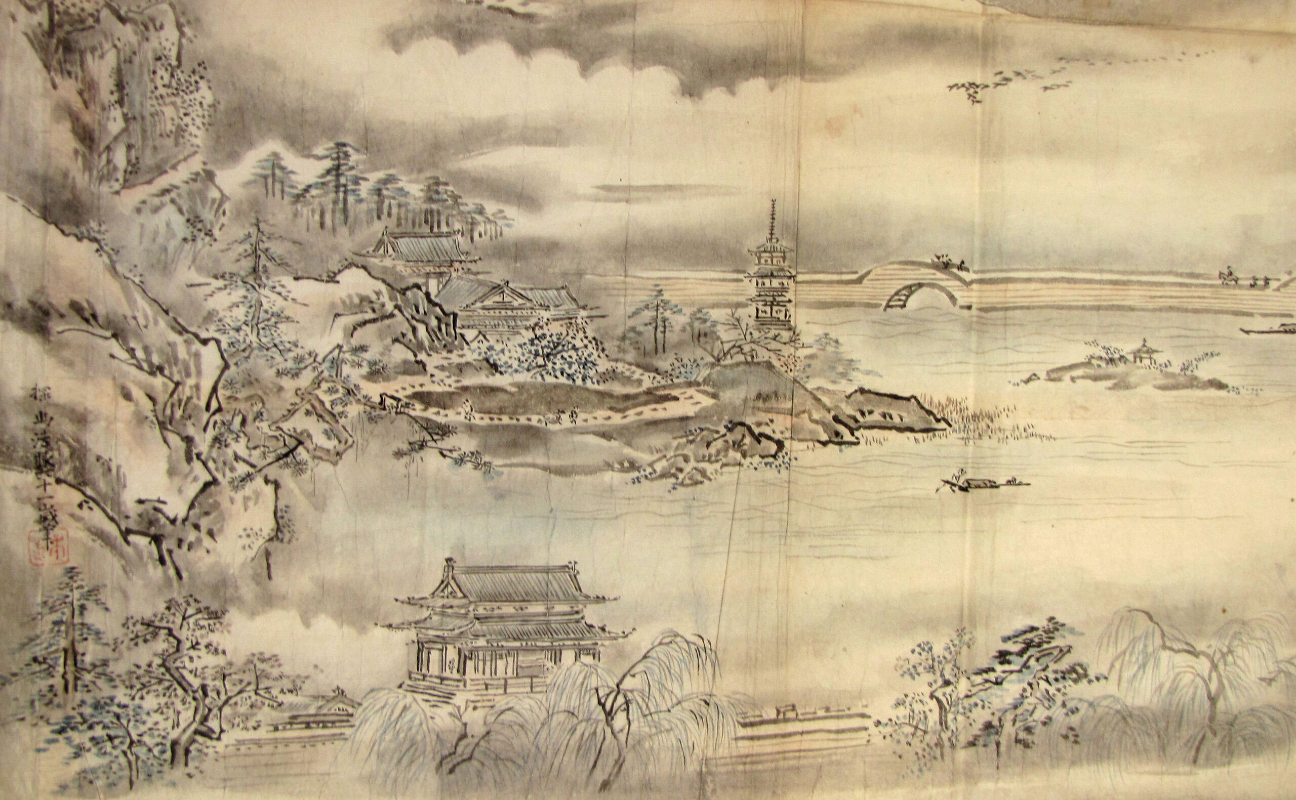 • Tuschezeichnung, Uferlandschaft, Jō Ganryū, MAK Inv.nr. HM 11754