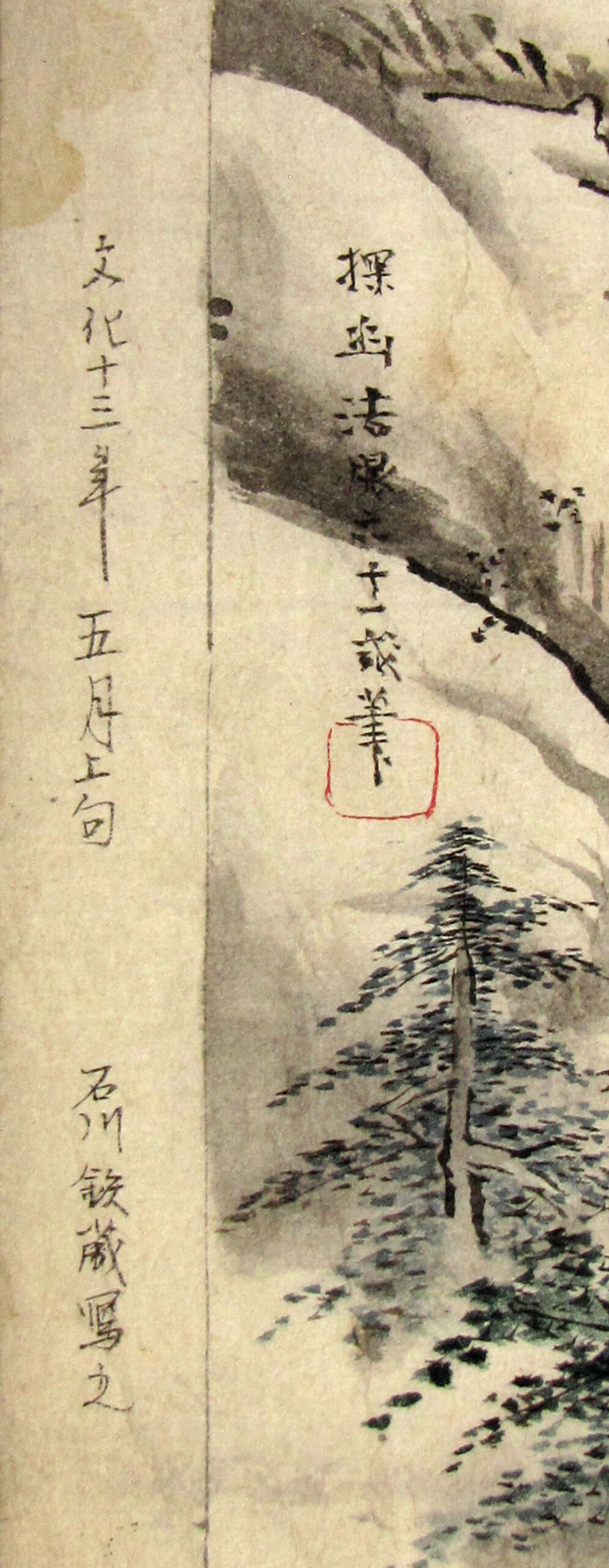 • Text im Bild: Bunka 13 (1816), erstes Drittel des 5. Monats, dies wurde von Ishikawa Tetsuzō kopiert, der sogleich der Besitzer istgemalt nach dem Tan'yū Hōgen im Alter von 61