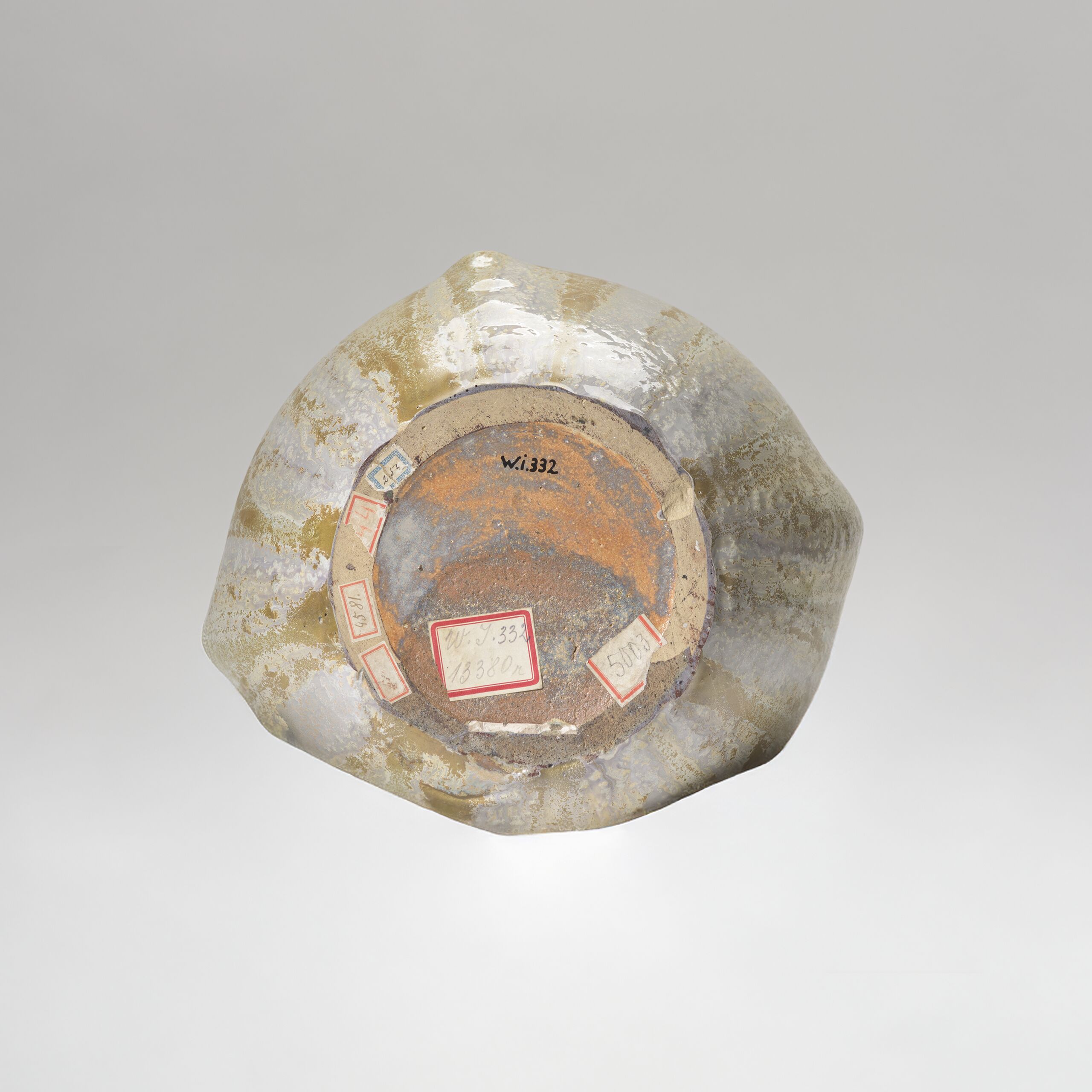 - Etikett (Außenseite) : Vase, gelb gefleckt (Teplitz) 444